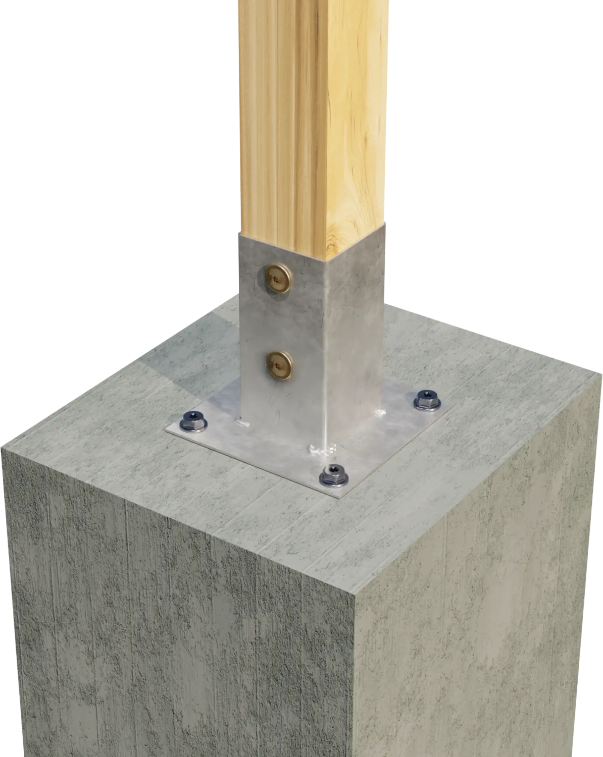 The anchor is used for attaching square wooden posts and beams directly to the substrate, e.g., concrete.