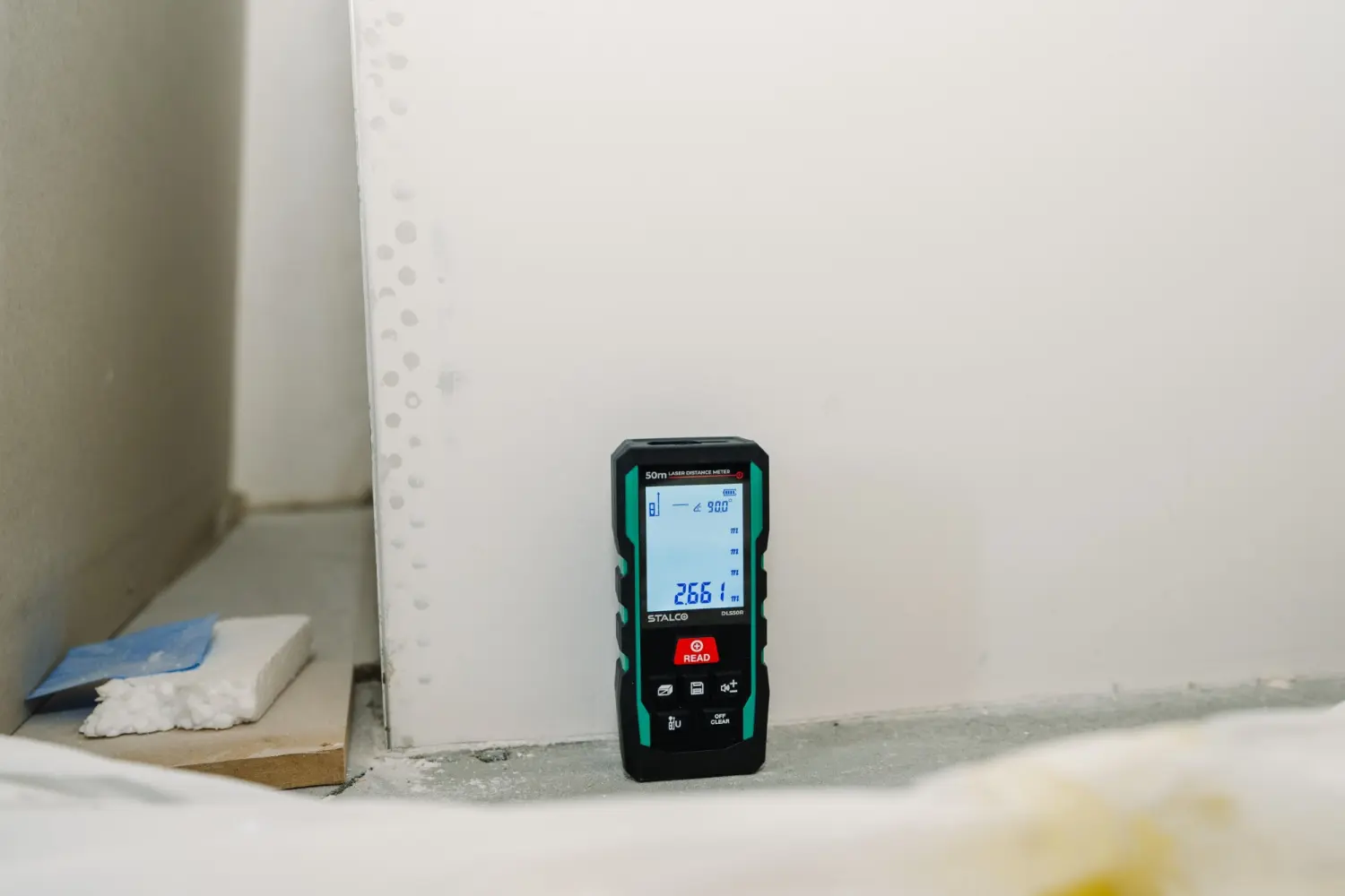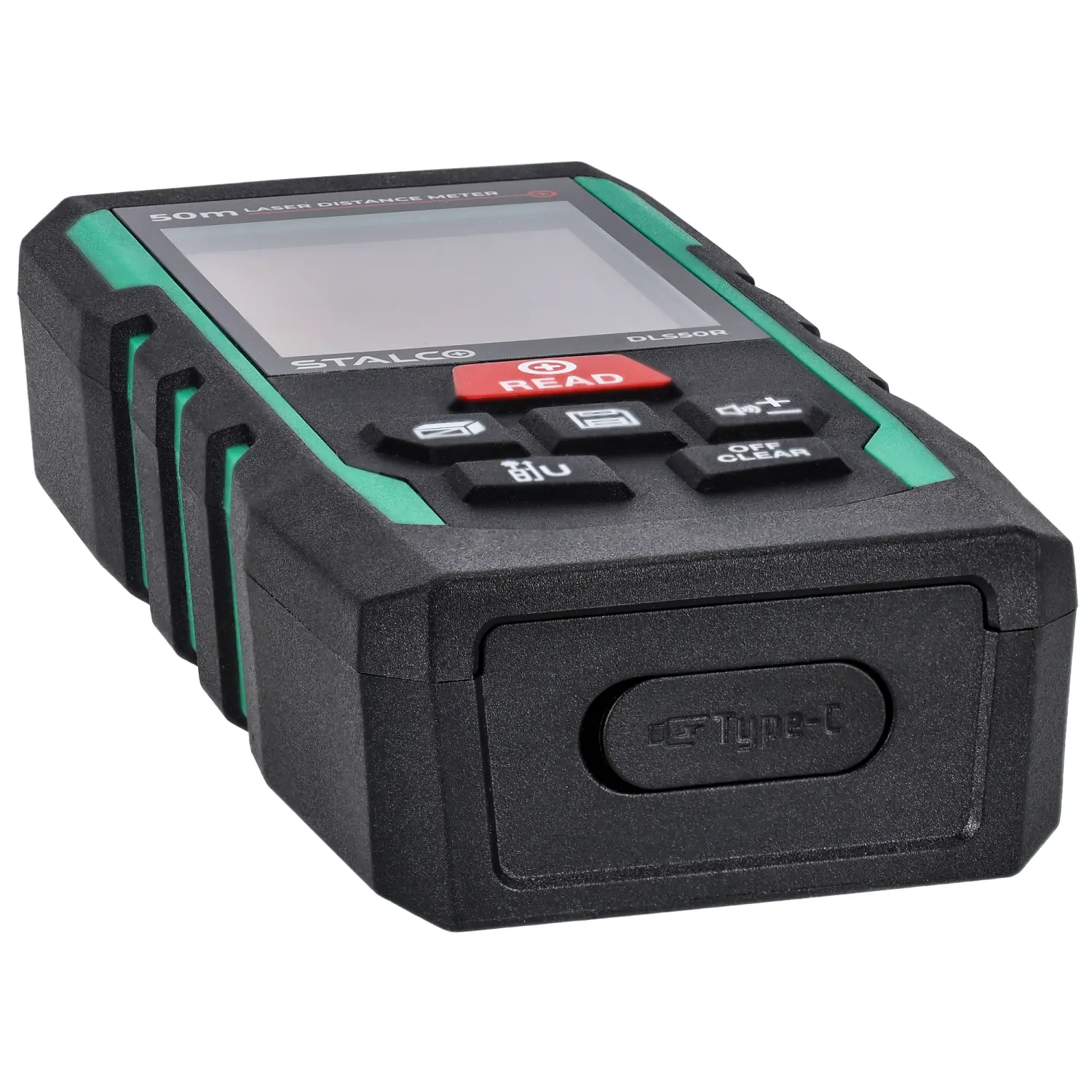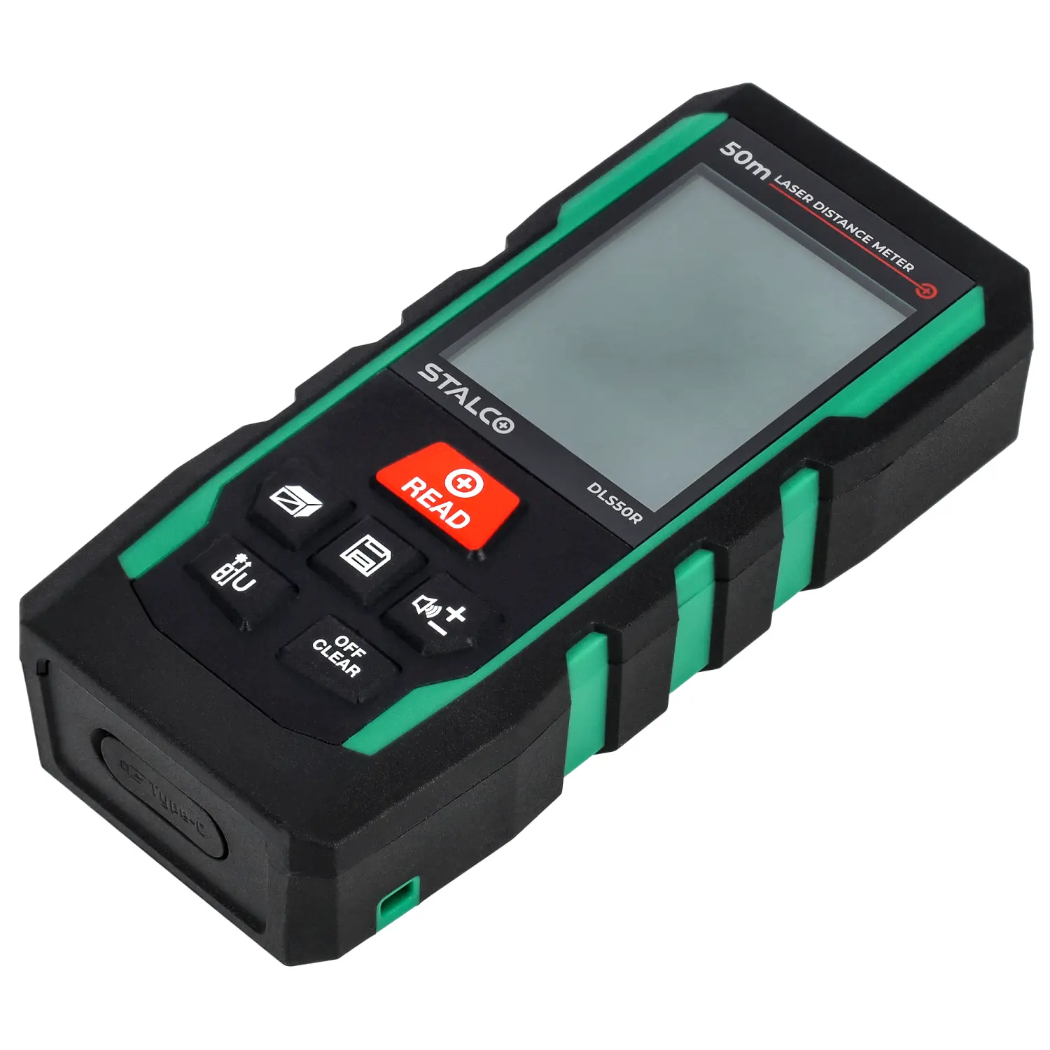 The DLS50R laser distance meter from the STALCO range is a precise and functional measuring tool designed for distances up to 50 meters. Equipped with a red laser beam and multiple advanced measuring functions, it is ideal for construction work, renovations, and general distance measurements.