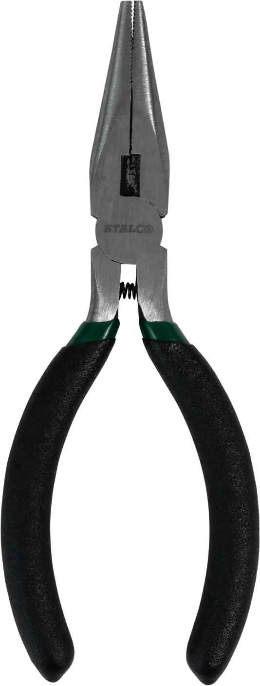 Straight long nose pliers are hand tools associated primarily with electrical work. Their long jaws, made of high-quality carbon steel, are ideal for gripping items in hard-to-reach places. Therefore, you can use STALCO straight long nose pliers when repairing household appliances and electronics. They can also be used when manufacturing or modifying objects and machine parts. A comfortable soft grip enhances work comfort.
