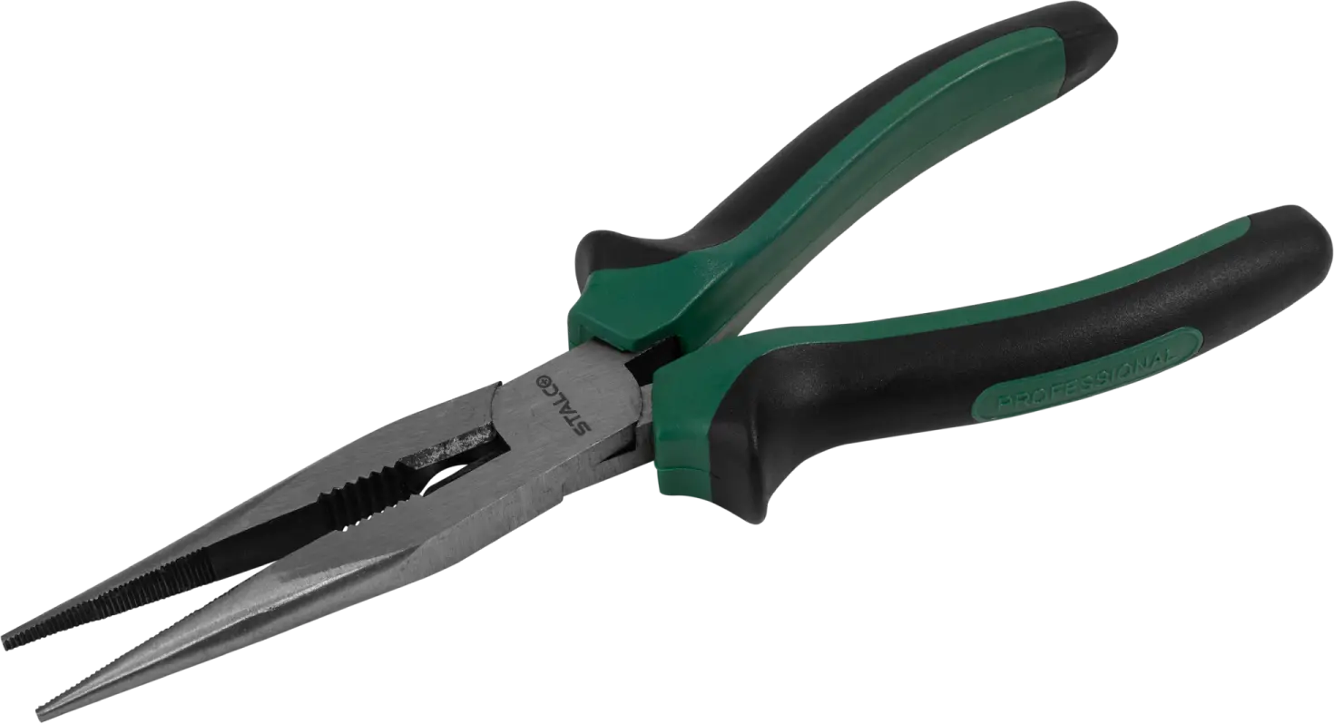 Straight long nose pliers are useful for many precision handiwork tasks. These tools are commonly called "bocian" (stomach pliers) due to their elongated jaws. They are designed and manufactured for electronics work, precision repairs, and material shaping. The ergonomically shaped bimaterial handle ensures comfort of use. STALCO straight long nose pliers are made of chrome vanadium steel. This material is resistant to corrosion, mechanical damage, and cracking, so you can confidently use them for the most demanding jobs.