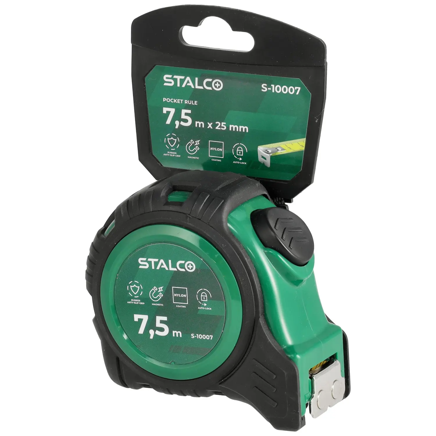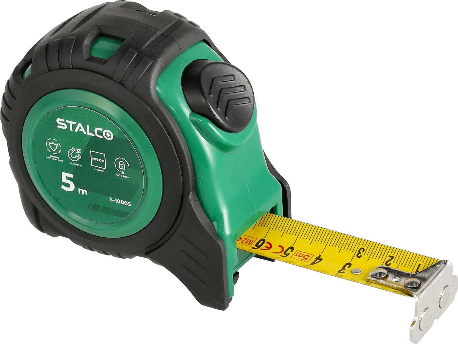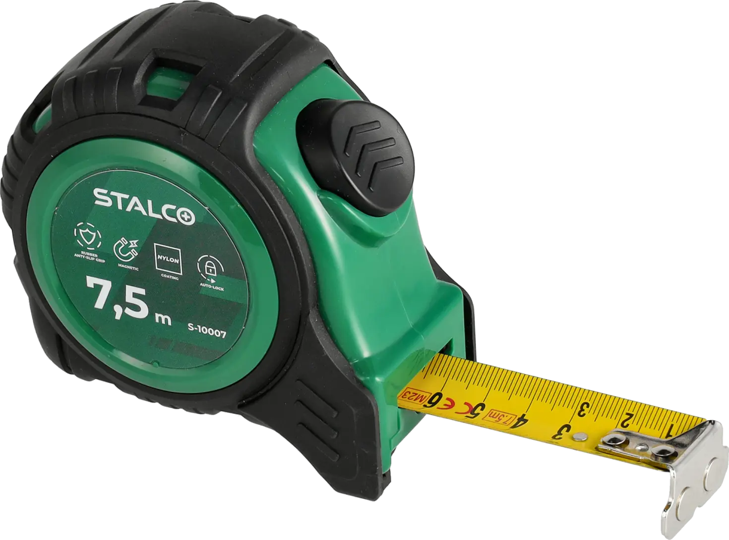 A tape measure is a basic measuring tool used in industry, construction, and around the home. You can confidently use this model even for the most demanding jobs. The tape measure's casing is coated with rubber, which improves its resistance to impacts resulting from falls. The tape measure is also protected against abrasion with a layer of nylon. Working is very convenient thanks to the magnetic tip connected to the tape with three stainless steel rivets. An automatic lock prevents the tape from uncontrolled winding. The tape measure is available in three tape length variants, which makes it easier to choose the tool for a specific field of work.