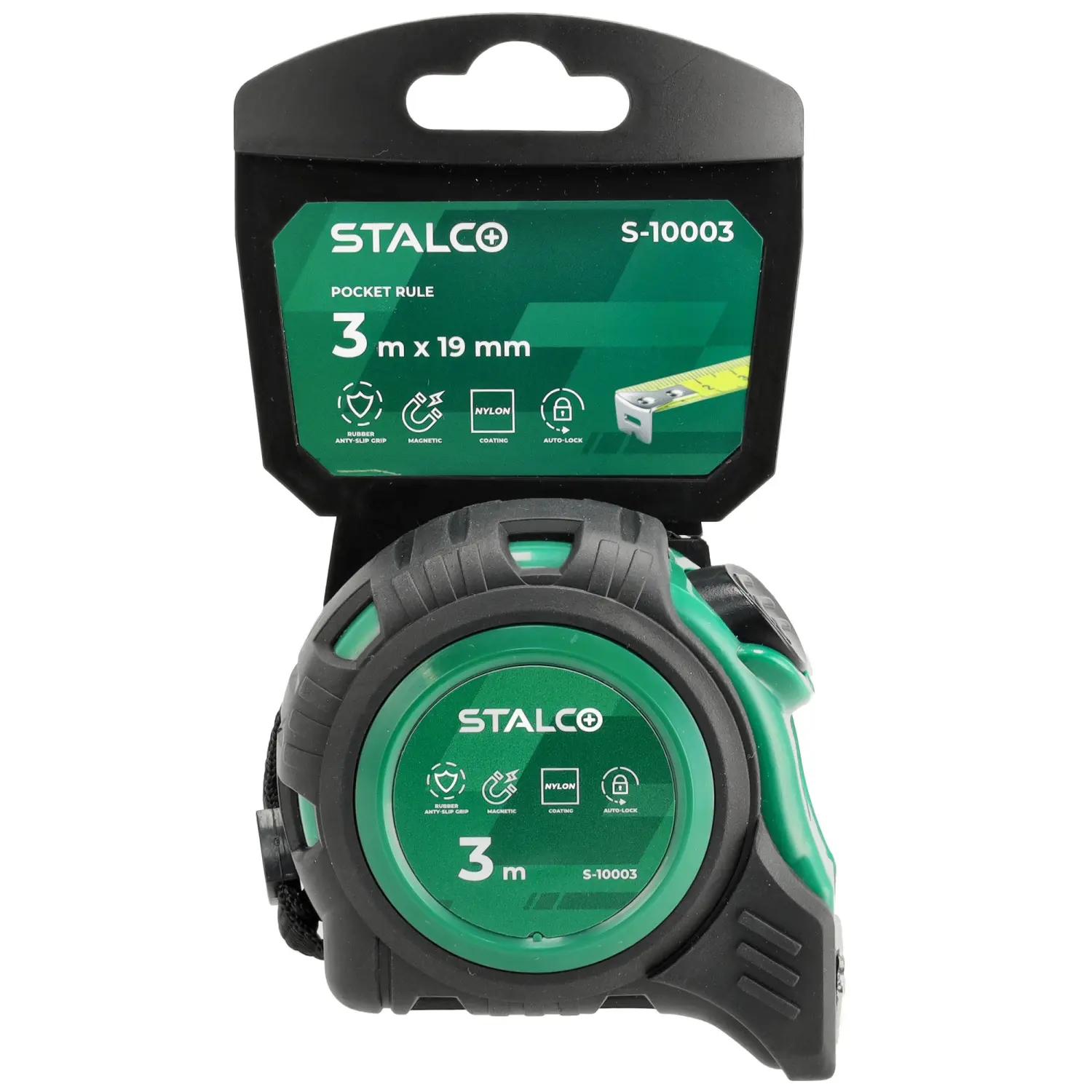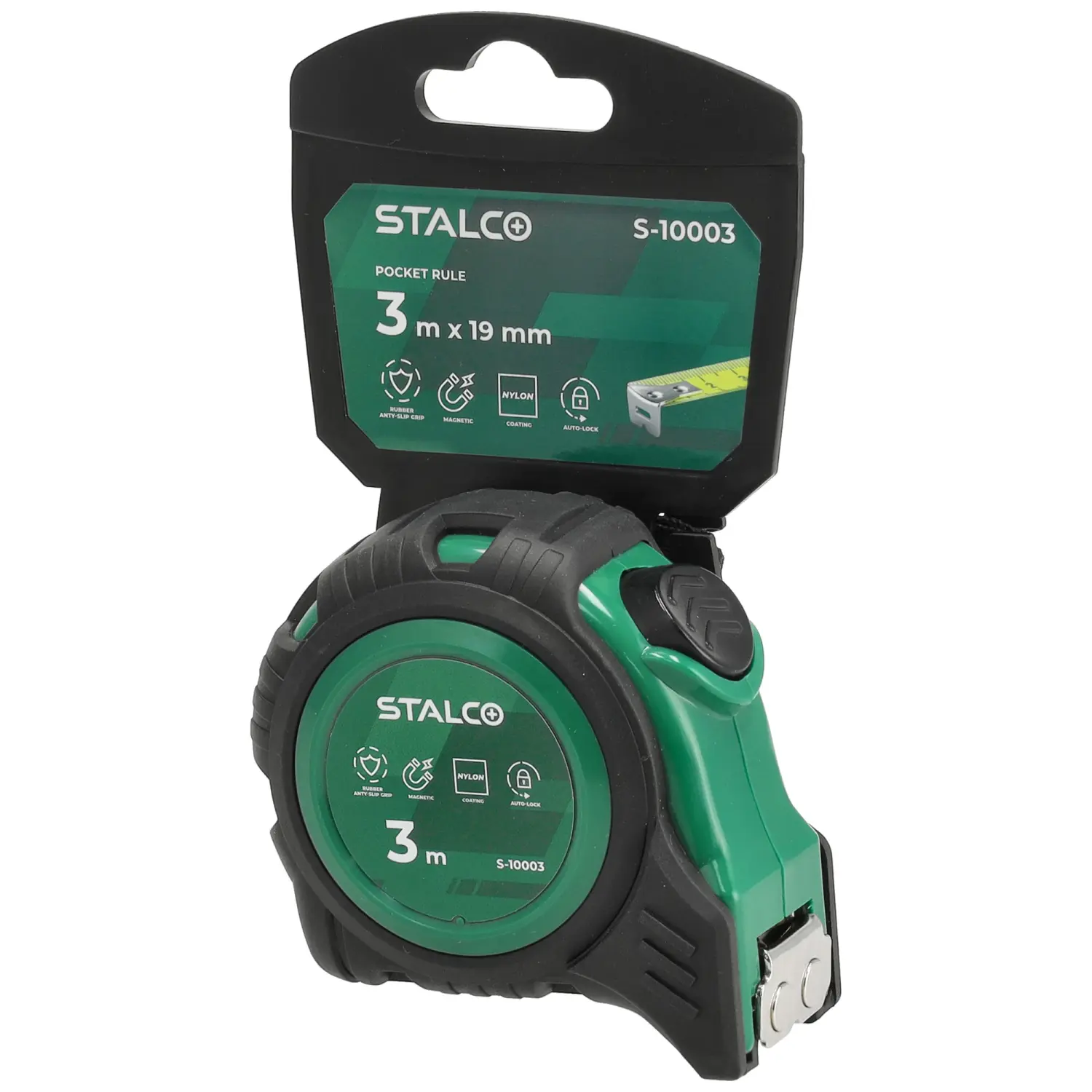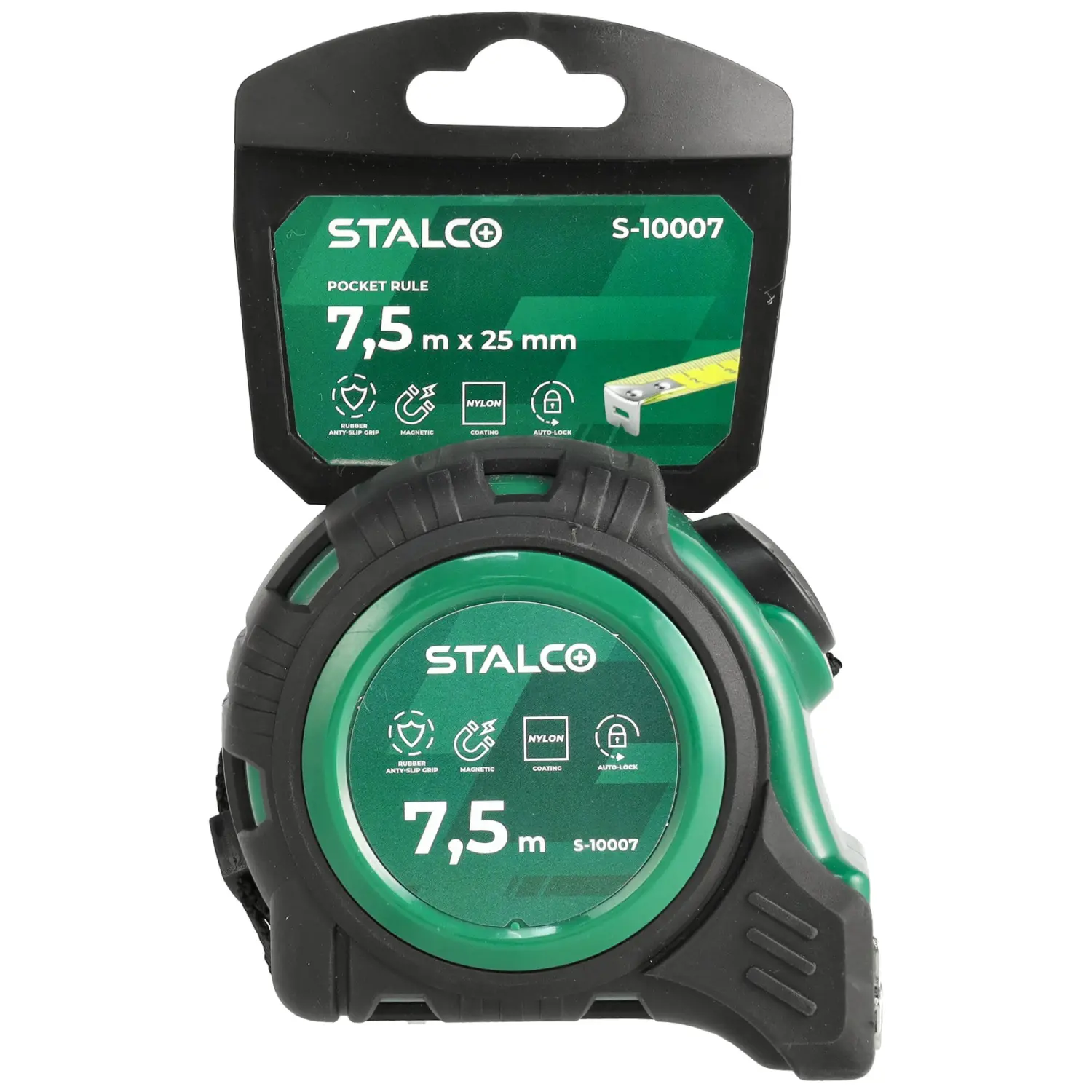 A tape measure is a basic measuring tool used in industry, construction, and around the home. You can confidently use this model even for the most demanding jobs. The tape measure's casing is coated with rubber, which improves its resistance to impacts resulting from falls. The tape measure is also protected against abrasion with a layer of nylon. Working is very convenient thanks to the magnetic tip connected to the tape with three stainless steel rivets. An automatic lock prevents the tape from uncontrolled winding. The tape measure is available in three tape length variants, which makes it easier to choose the tool for a specific field of work.