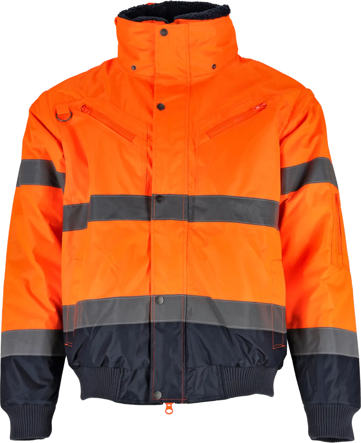 We present a functional, high-visibility winter jacket, the BOMBER 3in1 from the STALCO line, with a timeless pilot jacket cut. Made of durable OXFORD 300D polyester material with a polyurethane coating that protects against rain and additionally insulates against the cold. Thanks to detachable elements, the jacket offers various configurations, adapting to changing weather conditions and the user's needs. Ideal for workers working outdoors, it provides warmth, protection and increased visibility, and therefore – safety.