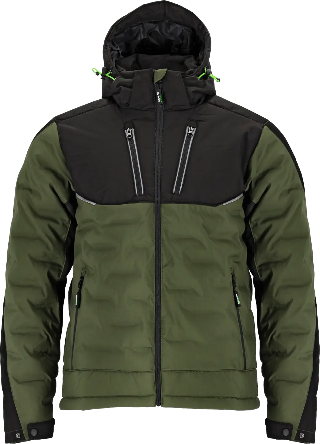 The men's insulated LOGAN J jacket by STALCO PERFECT is a piece of clothing that protects against cold and moisture. It has a modern cut that perfectly combines functionality with a fashionable look. It is a great addition to the STRETCH LINE collection and is also available in 2 colors: olive-black and gray-black. It is made of a pleasant, high-quality material, which guarantees its durability and comfort. This material also has a 3000 mm TPU parameter, meaning it provides a good barrier against wind and snow.