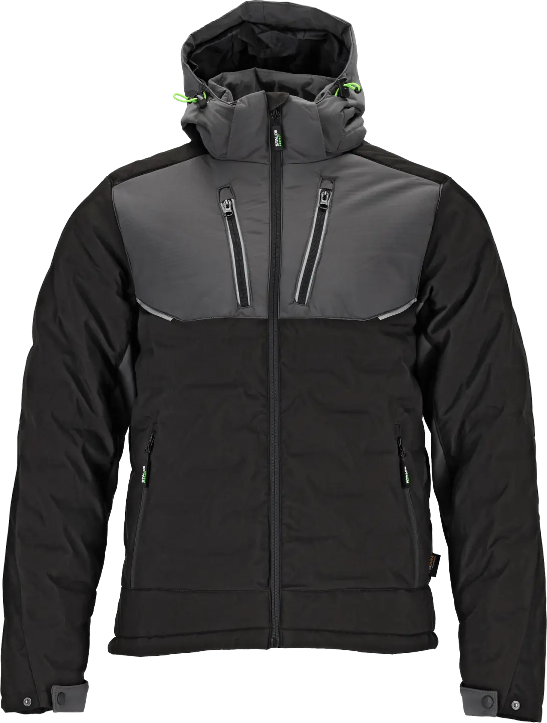 The men's insulated LOGAN J jacket by STALCO PERFECT is a piece of clothing that protects against cold and moisture. It has a modern cut that perfectly combines functionality with a fashionable look. It is a great addition to the STRETCH LINE collection and is also available in 2 colors: olive-black and gray-black. It is made of a pleasant, high-quality material, which guarantees its durability and comfort. This material also has a 3000 mm TPU parameter, meaning it provides a good barrier against wind and snow.