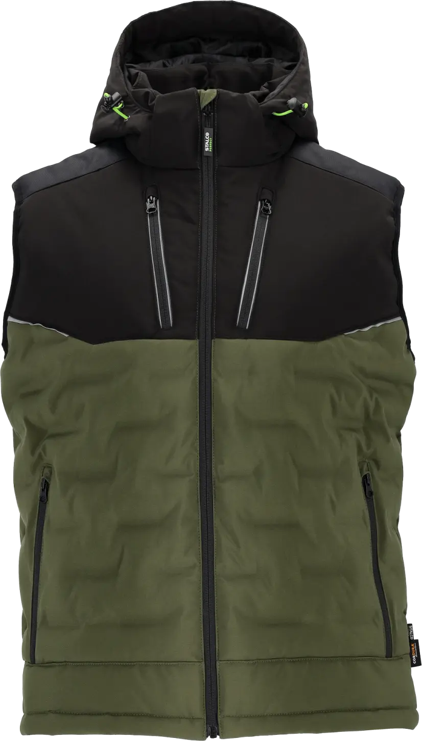 The insulated LOGAN V vest from STALCO PERFECT is an indispensable addition to layering. It features a modern cut that perfectly combines functionality with a fashionable look, making it a perfect addition to everyday outerwear. The vest matches the STRETCH LINE collection and is also available in two colors: olive-black and gray-black. It is made of a pleasant, high-quality material, ensuring durability and comfort. This material also has a 3000 mm TPU parameter, meaning it provides a good barrier against wind and snow.