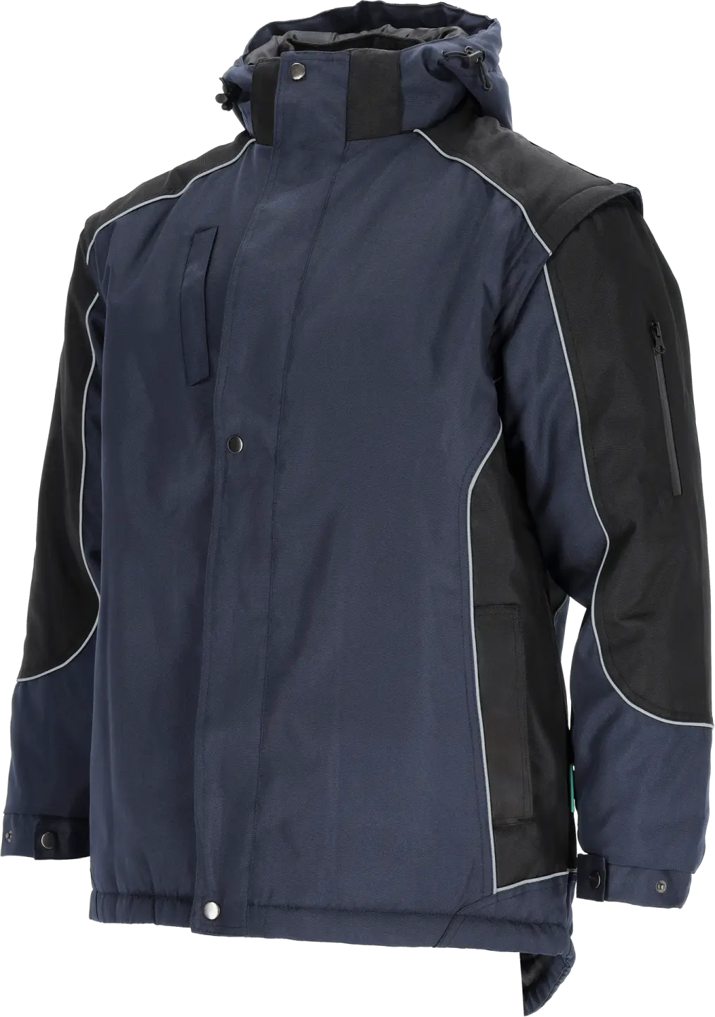 The PETER WORK JACKET is professional winter workwear. It was designed to provide thermal comfort and safety while working. It is insulated and features a quilted polyester lining. The outer fabric provides protection against wind and rain, as well as the hazards typical of industrial work. The jacket has a universal cut and is suitable for many industries. This warm and very durable jacket is primarily used in construction and outdoor work, even in very difficult weather conditions. It can also be used for security or logistics work. It has contrasting elements to improve visibility. Furthermore, a reflective vest can be worn over it, further expanding its range of applications.