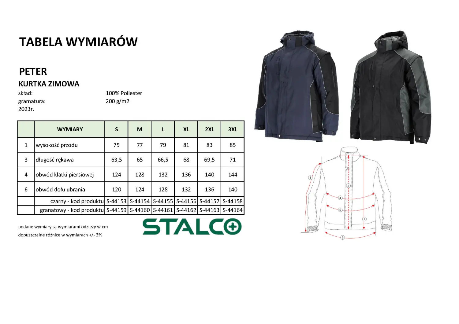 The PETER STALCO jacket is made of OXFORD 600D polyester fabric. This material is characterized by excellent resistance to mechanical damage and abrasion. It is also moisture-resistant and prevents wind. It is easy to clean and very durable. The jacket is available in two color variants: gray and navy blue.