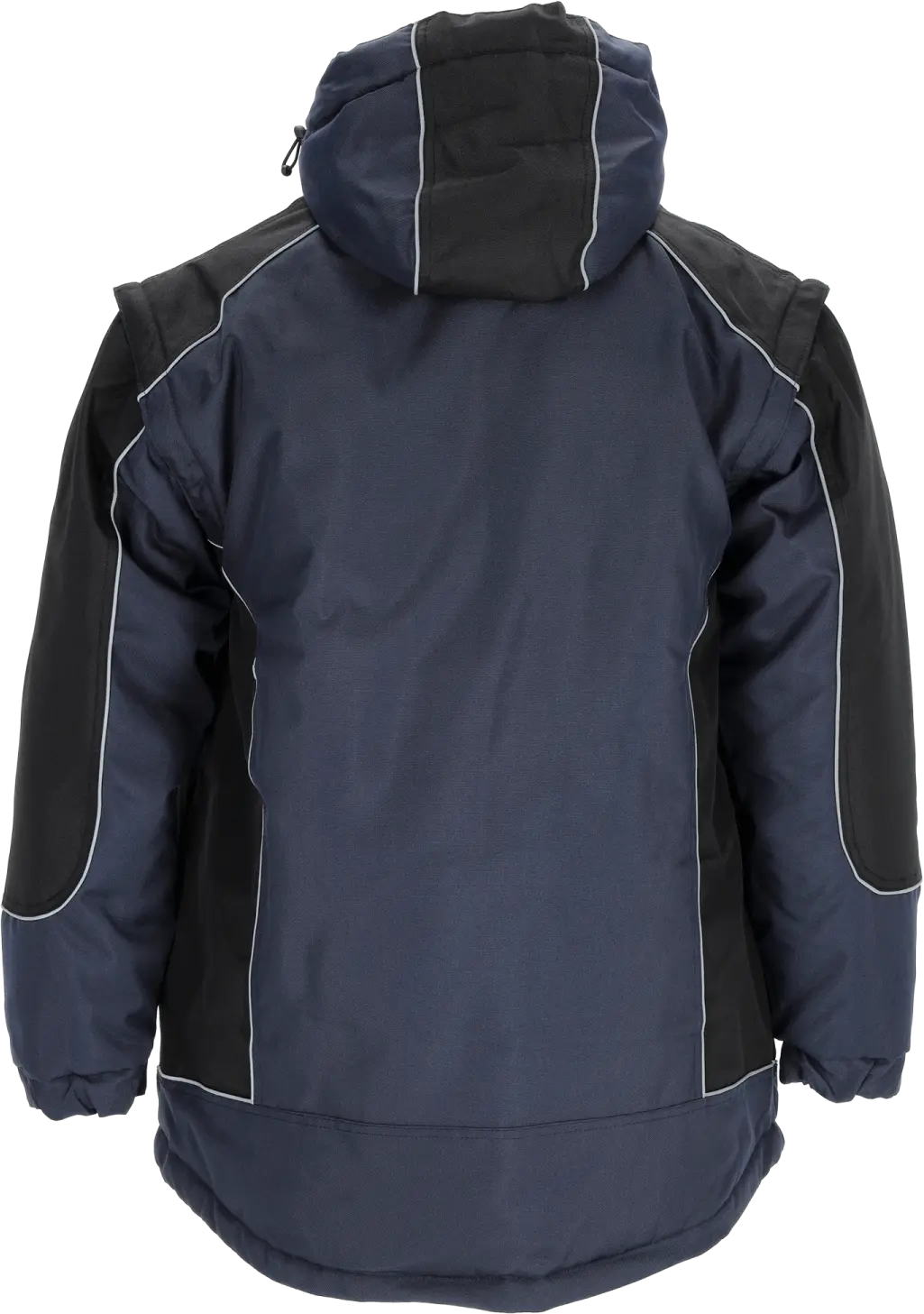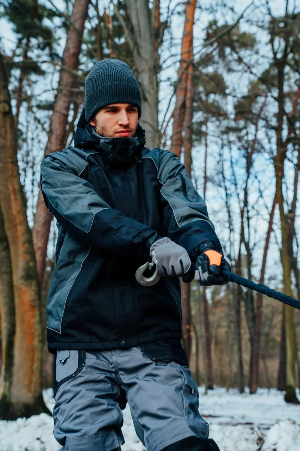 The PETER WORK JACKET is professional winter workwear. It was designed to provide thermal comfort and safety while working. It is insulated and features a quilted polyester lining. The outer fabric provides protection against wind and rain, as well as the hazards typical of industrial work. The jacket has a universal cut and is suitable for many industries. This warm and very durable jacket is primarily used in construction and outdoor work, even in very difficult weather conditions. It can also be used for security or logistics work. It has contrasting elements to improve visibility. Furthermore, a reflective vest can be worn over it, further expanding its range of applications.