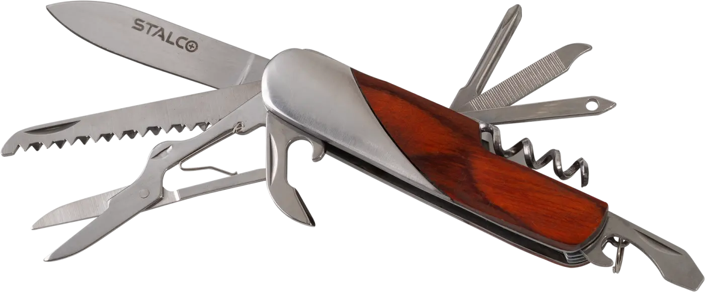 A professional multi-purpose knife is a tool that will get you out of any situation. It includes several accessories that will prove useful both at work and in your free time. Besides a traditional blade, the multi-purpose knife also comes with a saw, file, scissors, and a set of bottle openers. All accessories can be stored inside the handle and only one removed, making the tool much easier to use. When you're finished, you can store the multi-purpose knife in the included case. The tool is made of stainless steel, so you can safely take it camping or transport it in your car.