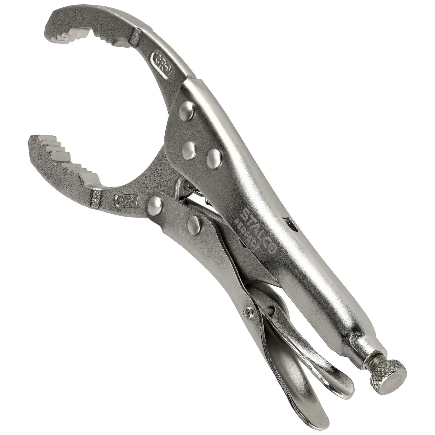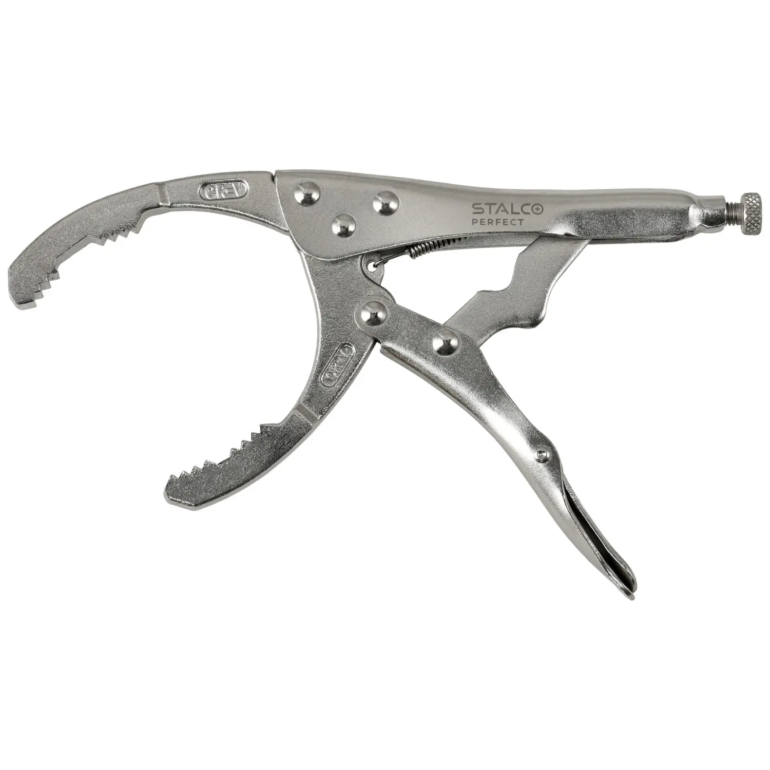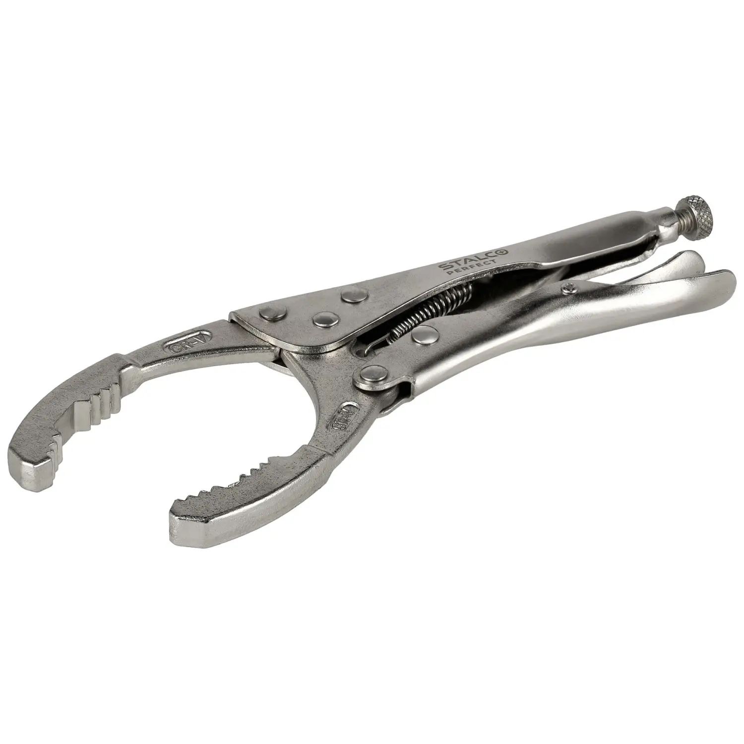 Clamping pliers for removing oil filters with dimensions from 50 to 118 mm. Thanks to the adjustment knob, you can easily and quickly adjust the range to the filter size. Specially profiled and serrated jaws allow you to unscrew even very tightly tightened oil filters.