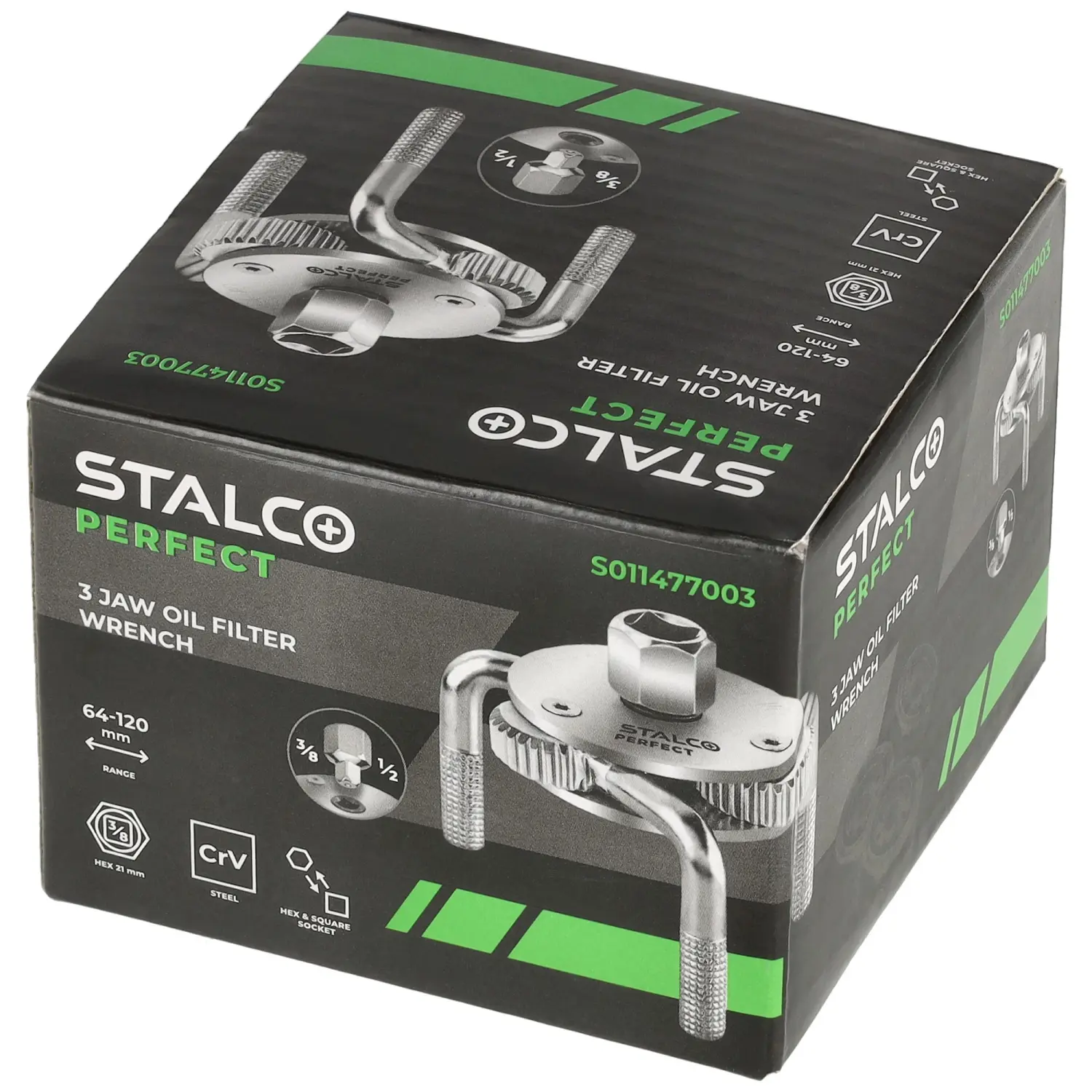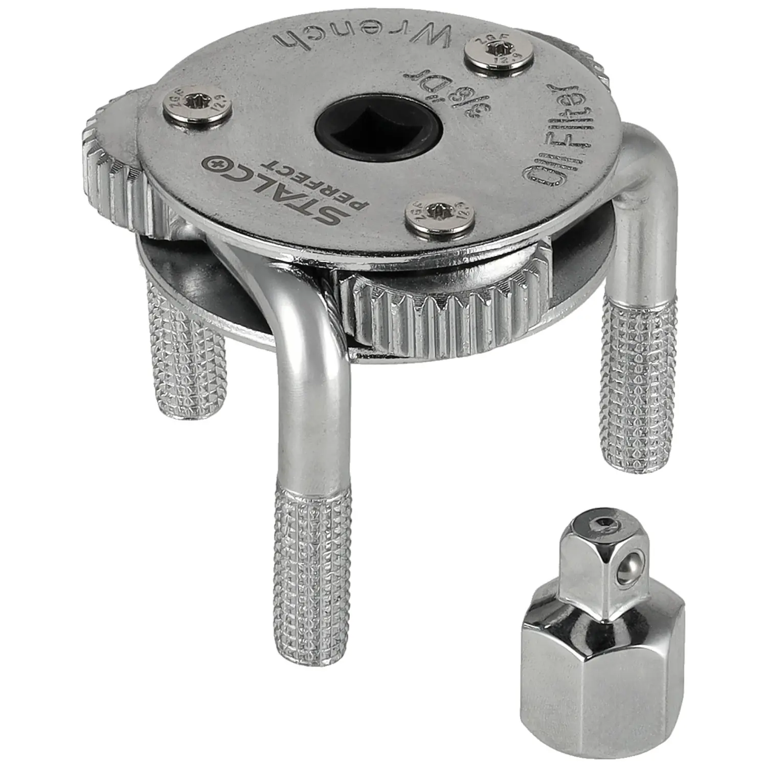 Oil filter wrench with dimensions 64-120mm, designed for professionals, designed for removing and installing oil filters in metal housings. Includes a 3/8" to 1/2" reduction.