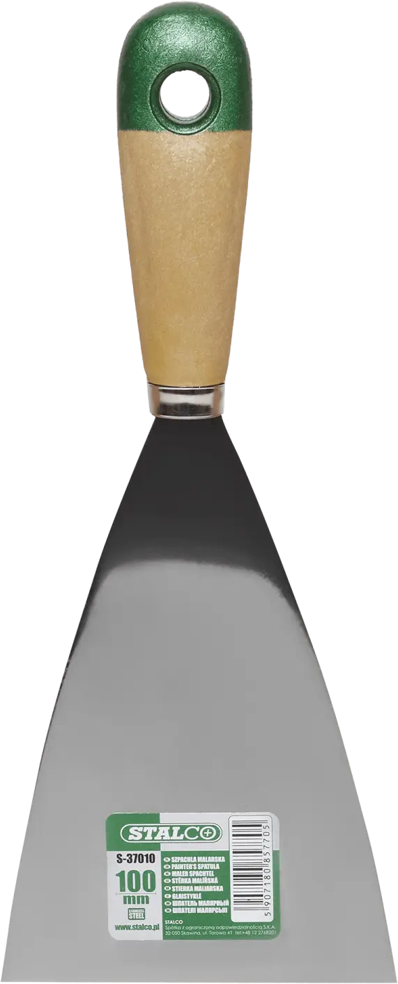 When working on a construction project, it's worth having a suitable painter's putty knife. This tool is useful for removing excess paint from a painted surface. It's also effective for mixing paint and preparing the surface for painting. These products can also be used for applying special paints, plasters, and other preparations. The STALCO painter's putty knife has a flexible construction made of stainless steel. This material is resistant to construction chemicals and most solvents. The smooth surface is easy to clean. The putty knife has a handle made of varnished wood. The material does not absorb paint or moisture, so it will remain functional throughout many projects. Depending on the nature of the work, you can choose a putty knife with a width of 30 to 120 mm.