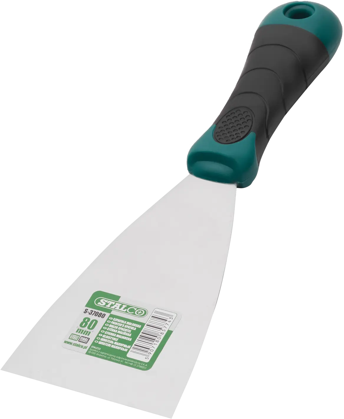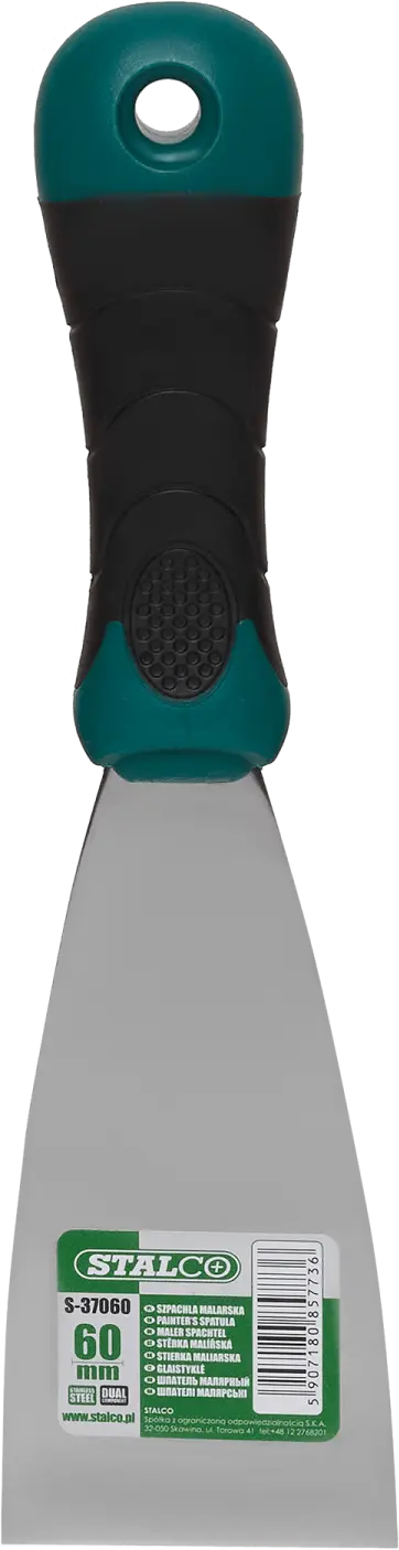 A painter's putty knife is a product useful for various finishing tasks. Its main purpose is to apply paint in certain painting techniques and remove excess material from the substrate. The putty knife can be used for mixing paints, varnishes, and applying plasters. It is also effective for creating structured surfaces. The STALCO painter's putty knife is made of stainless steel. The material is easy to clean and resistant to chemicals. The handle is made of a plastic component. It is resistant to cracking, scratching, and solvents. It has an ergonomic shape, making even prolonged work comfortable. The putty knife is available in widths from 40 to 150 mm.