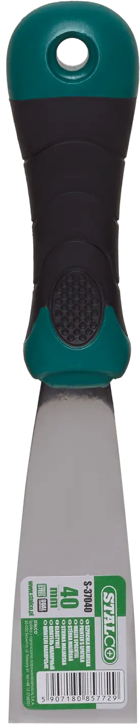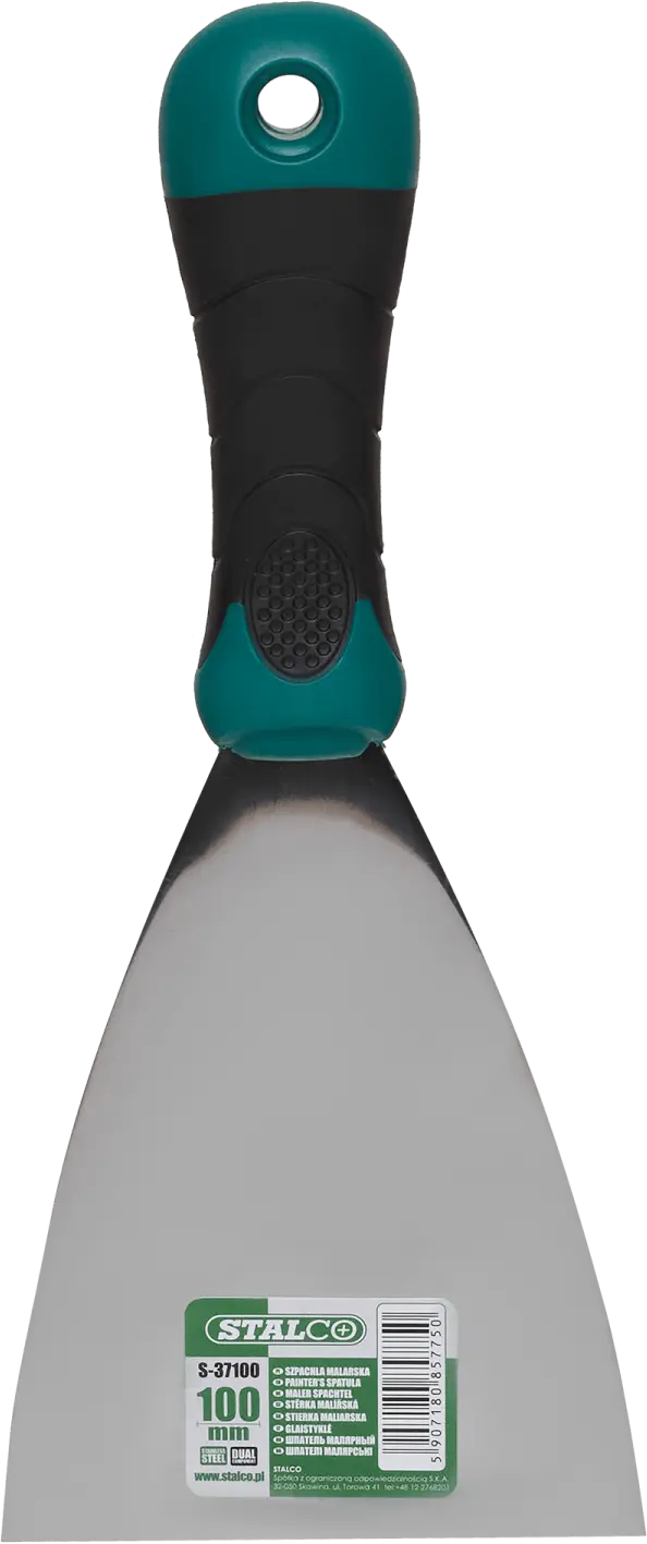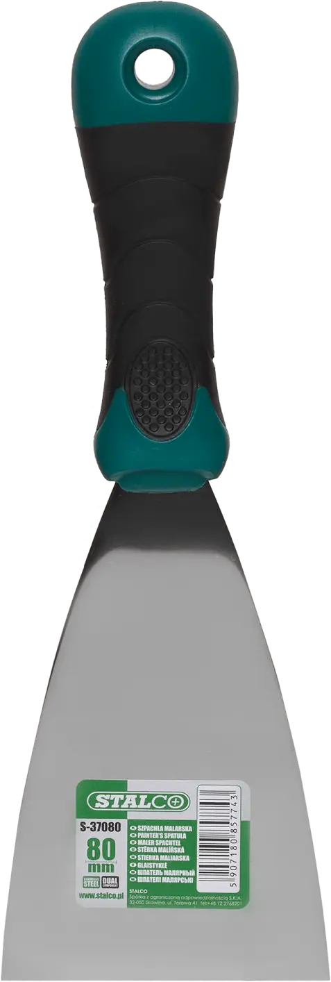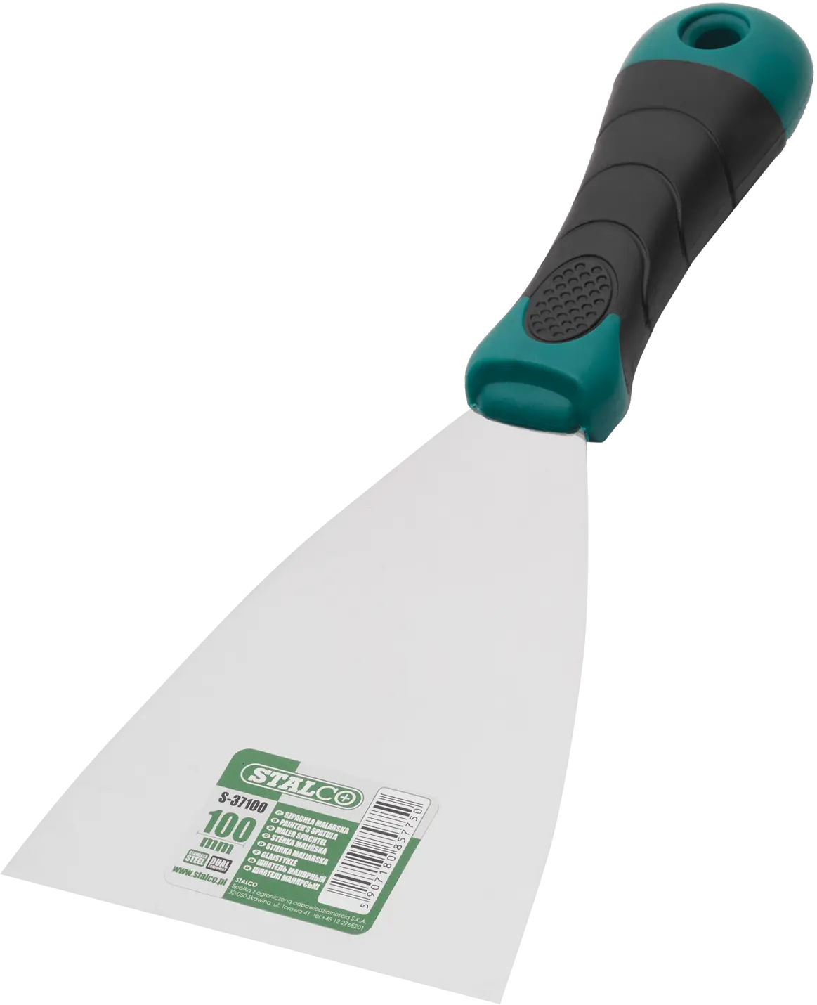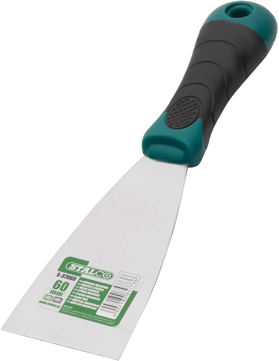 A painter's putty knife is a product useful for various finishing tasks. Its main purpose is to apply paint in certain painting techniques and remove excess material from the substrate. The putty knife can be used for mixing paints, varnishes, and applying plasters. It is also effective for creating structured surfaces. The STALCO painter's putty knife is made of stainless steel. The material is easy to clean and resistant to chemicals. The handle is made of a plastic component. It is resistant to cracking, scratching, and solvents. It has an ergonomic shape, making even prolonged work comfortable. The putty knife is available in widths from 40 to 150 mm.