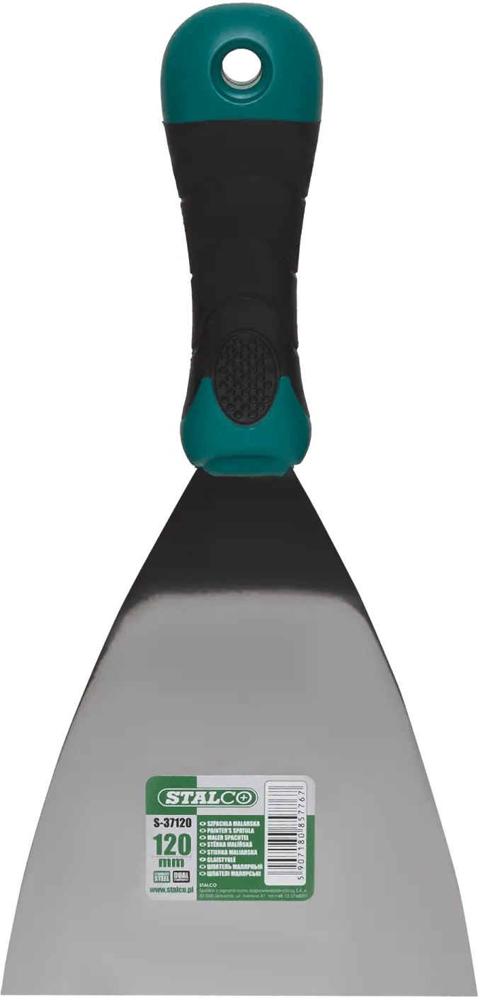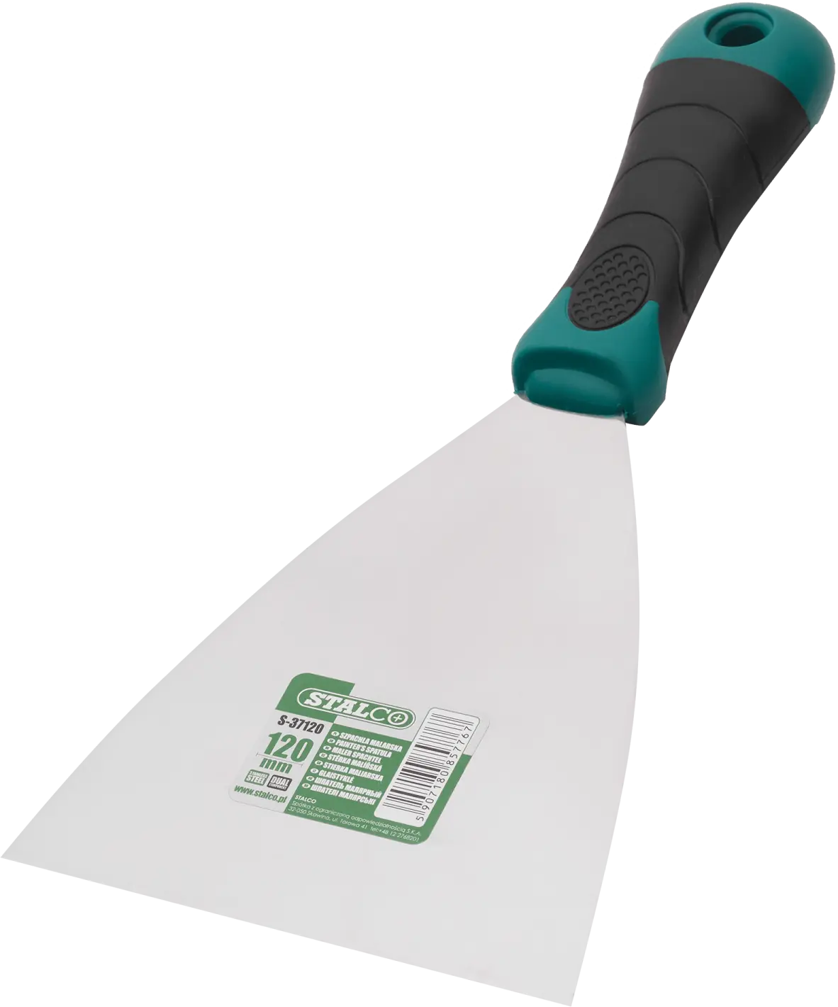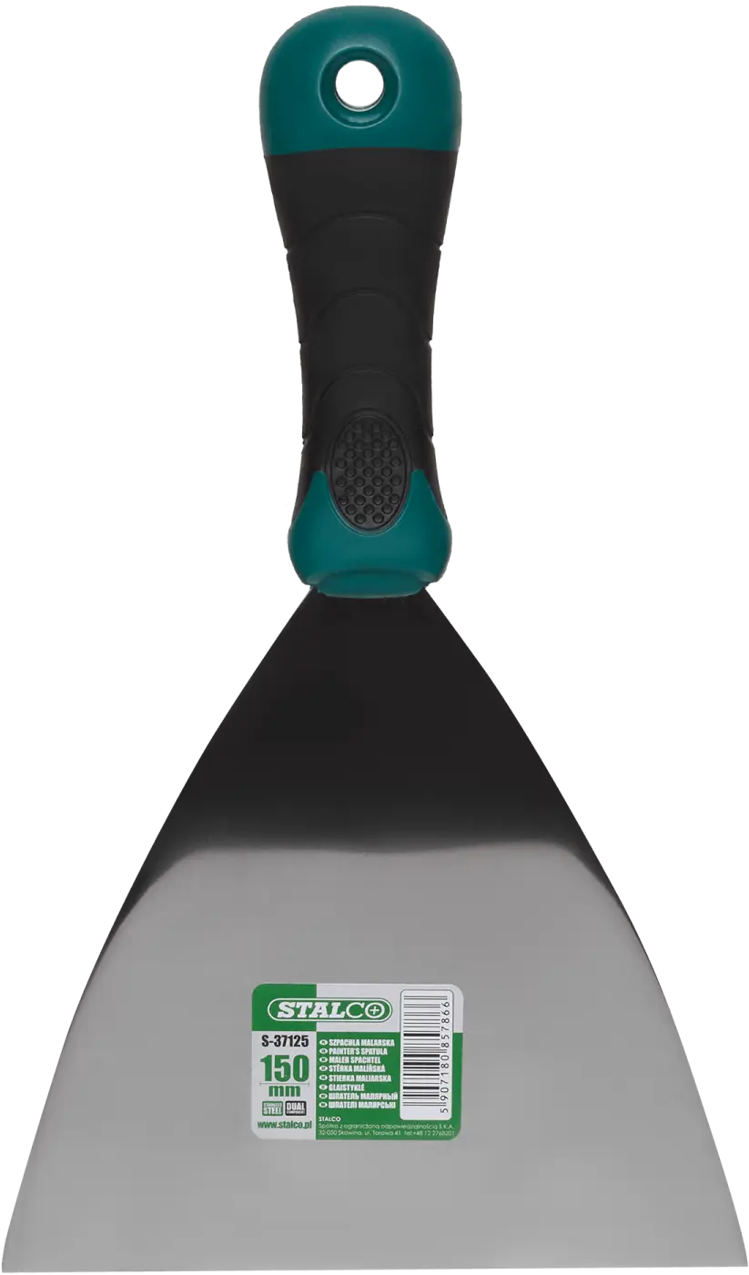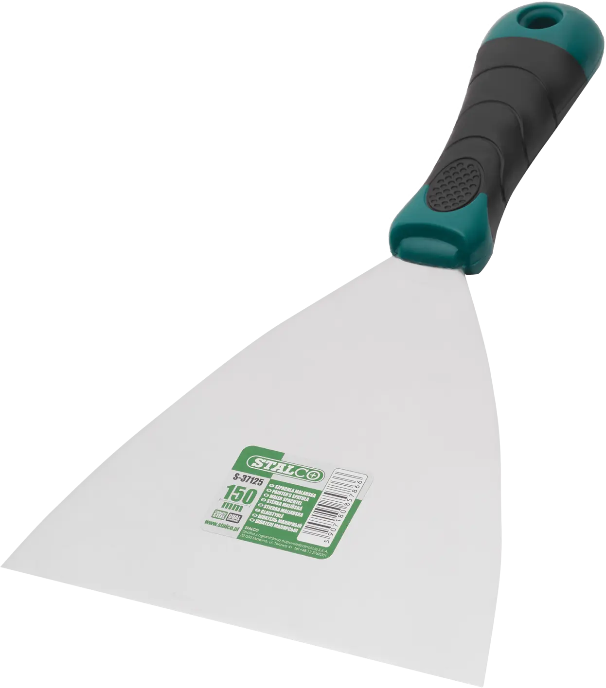 A painter's putty knife is a product useful for various finishing tasks. Its main purpose is to apply paint in certain painting techniques and remove excess material from the substrate. The putty knife can be used for mixing paints, varnishes, and applying plasters. It is also effective for creating structured surfaces. The STALCO painter's putty knife is made of stainless steel. The material is easy to clean and resistant to chemicals. The handle is made of a plastic component. It is resistant to cracking, scratching, and solvents. It has an ergonomic shape, making even prolonged work comfortable. The putty knife is available in widths from 40 to 150 mm.
