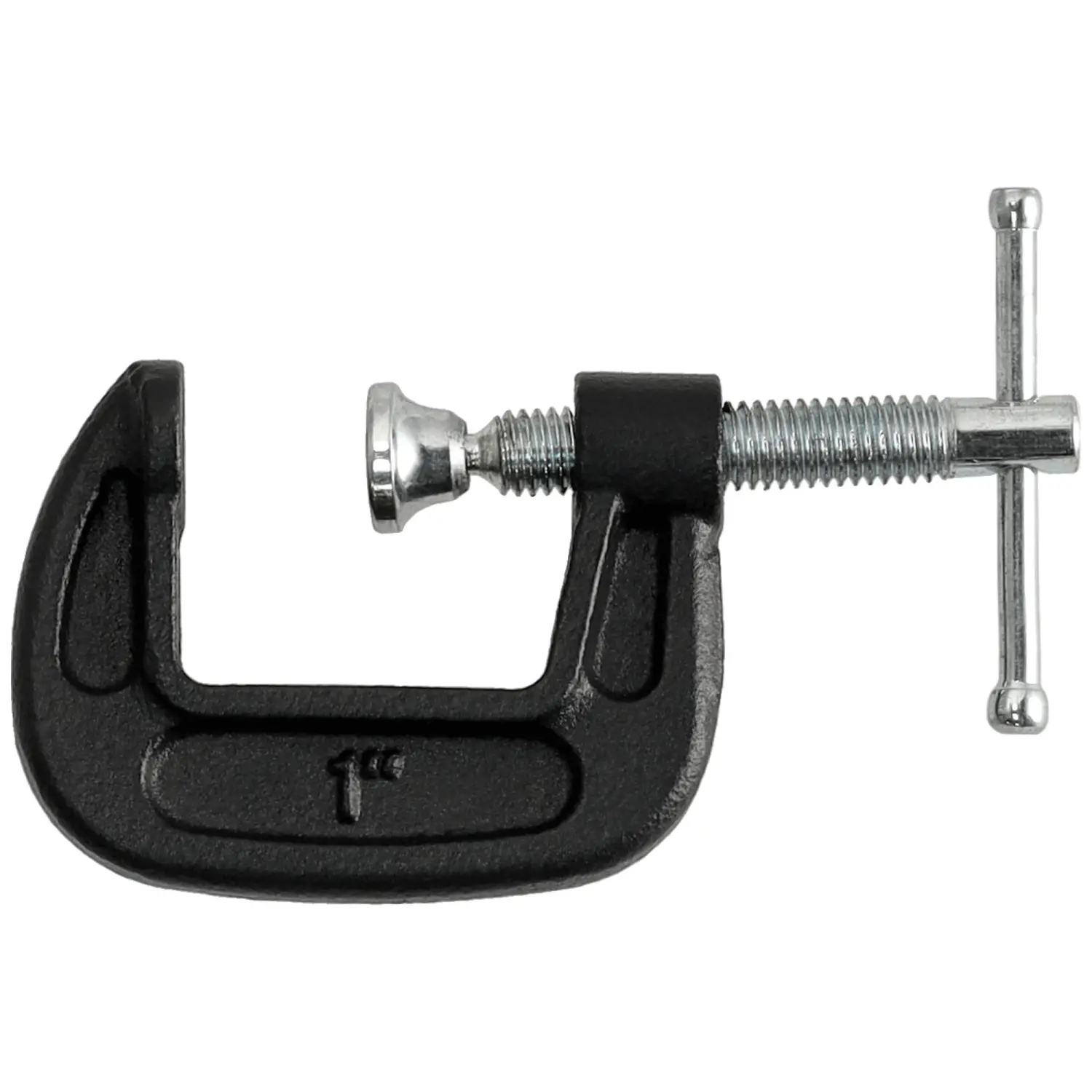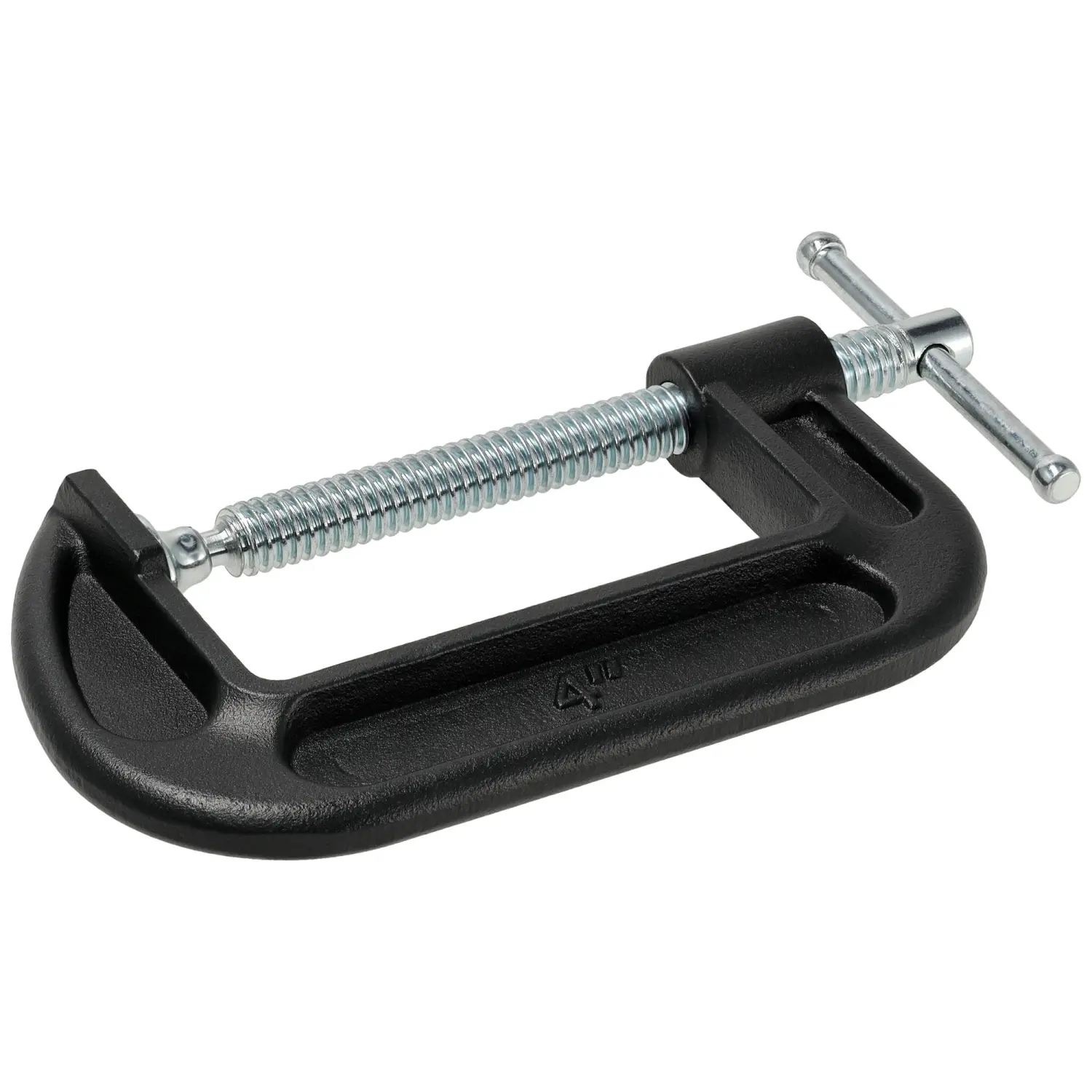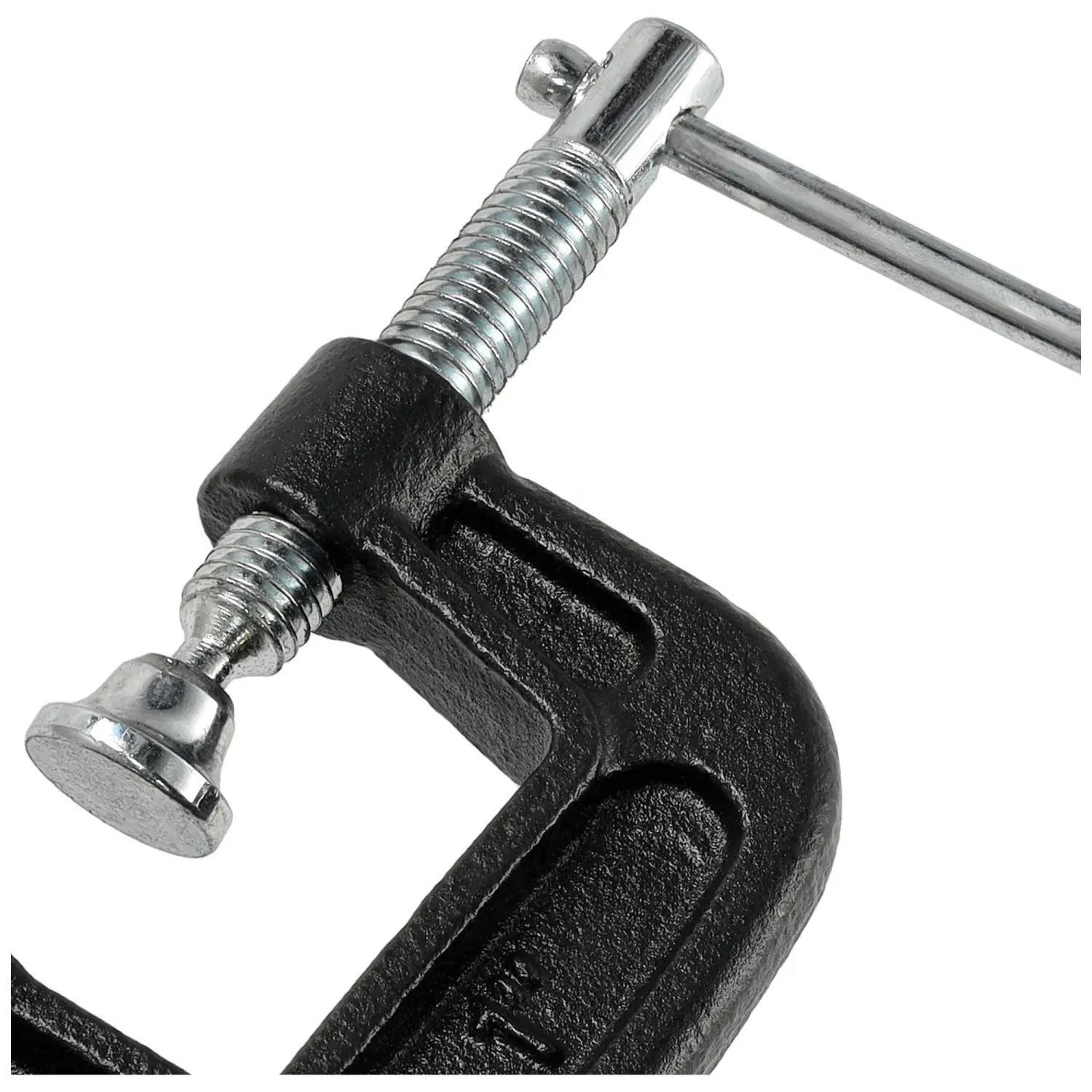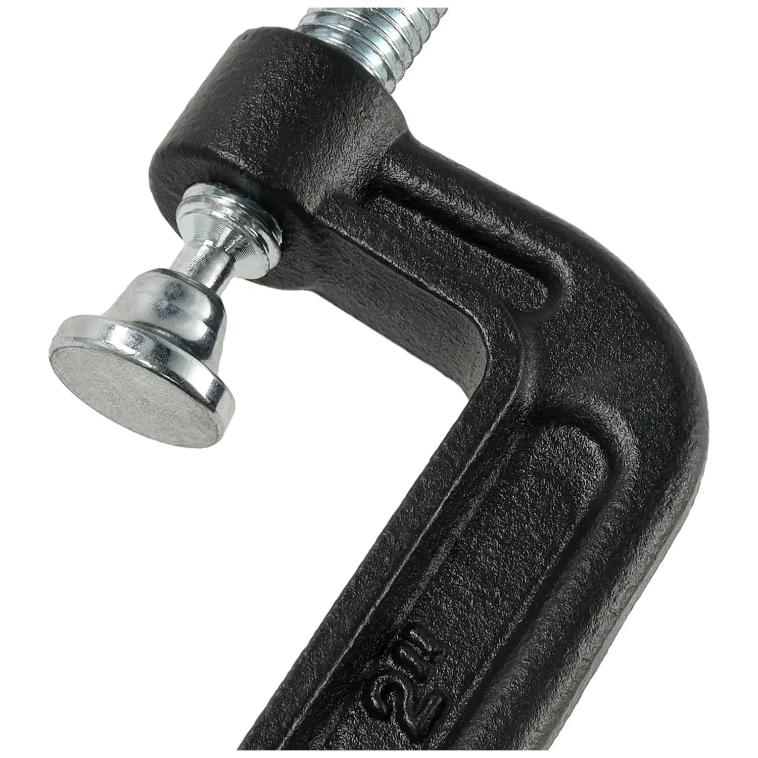 C-type clamp with a high clamping force of 200 kg, designed for presses; locksmithing, carpentry, welding. The solid handle allows for very strong tightening. The clamp foot is placed on a swinging joint, which allows it to adapt to the shape of the material.