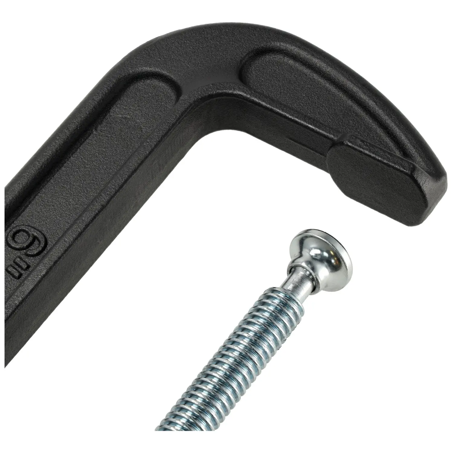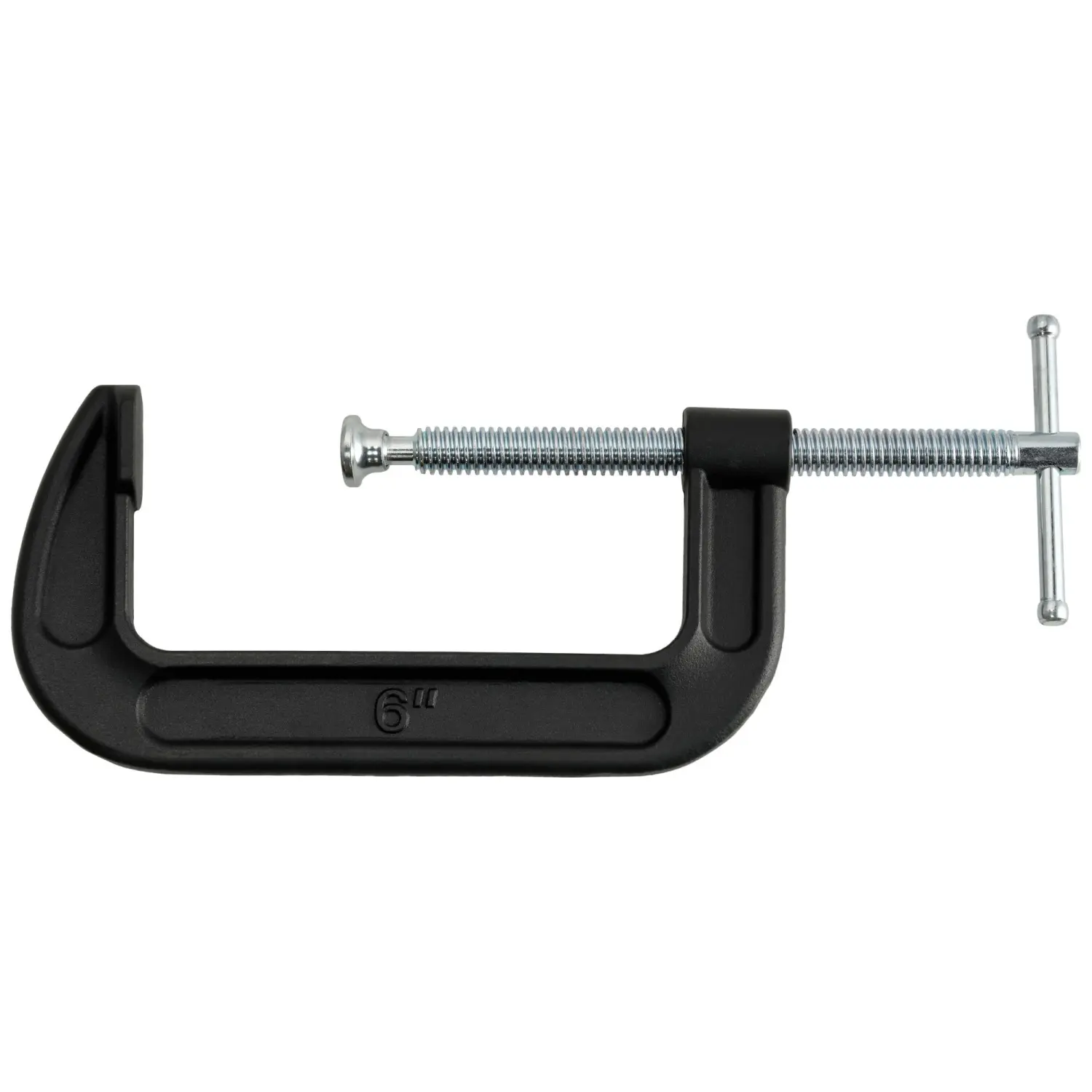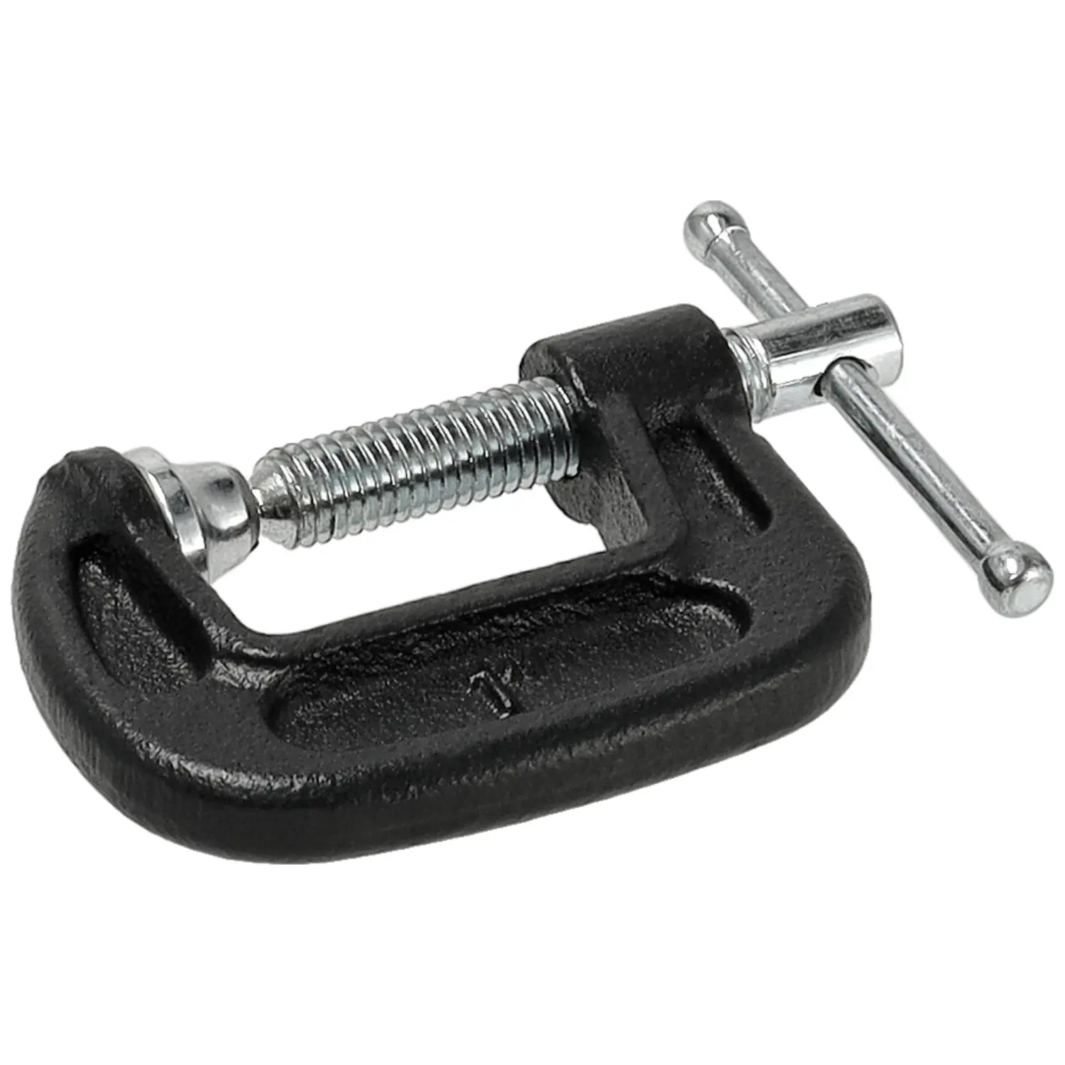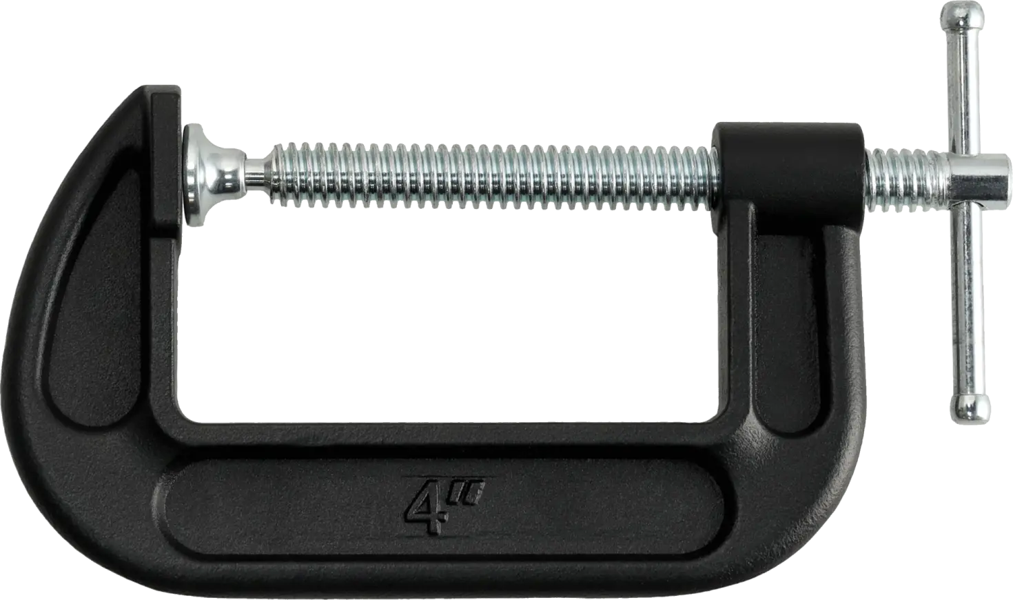 C-type clamp with a high clamping force of 200 kg, designed for presses; locksmithing, carpentry, welding. The solid handle allows for very strong tightening. The clamp foot is placed on a swinging joint, which allows it to adapt to the shape of the material.