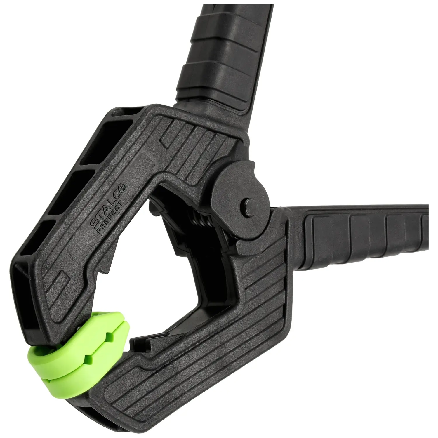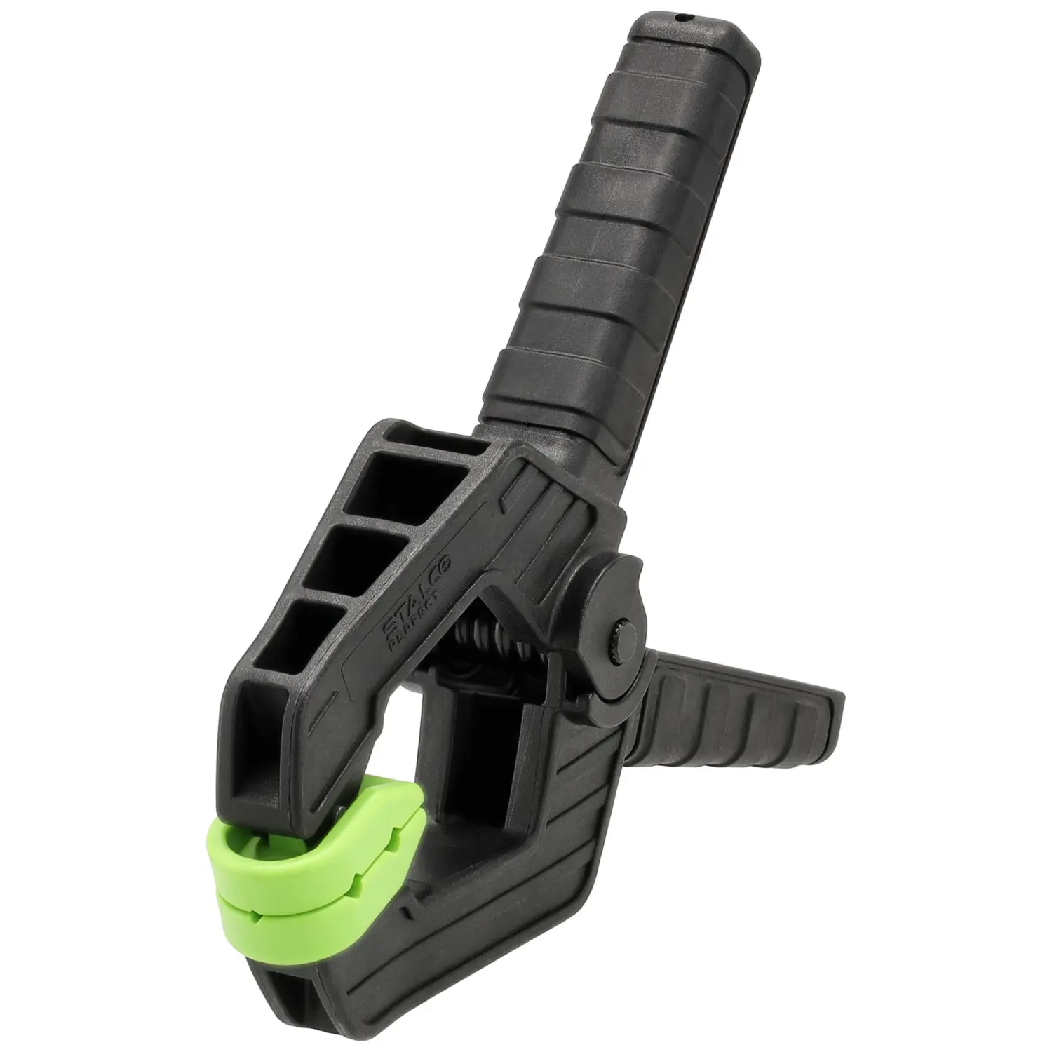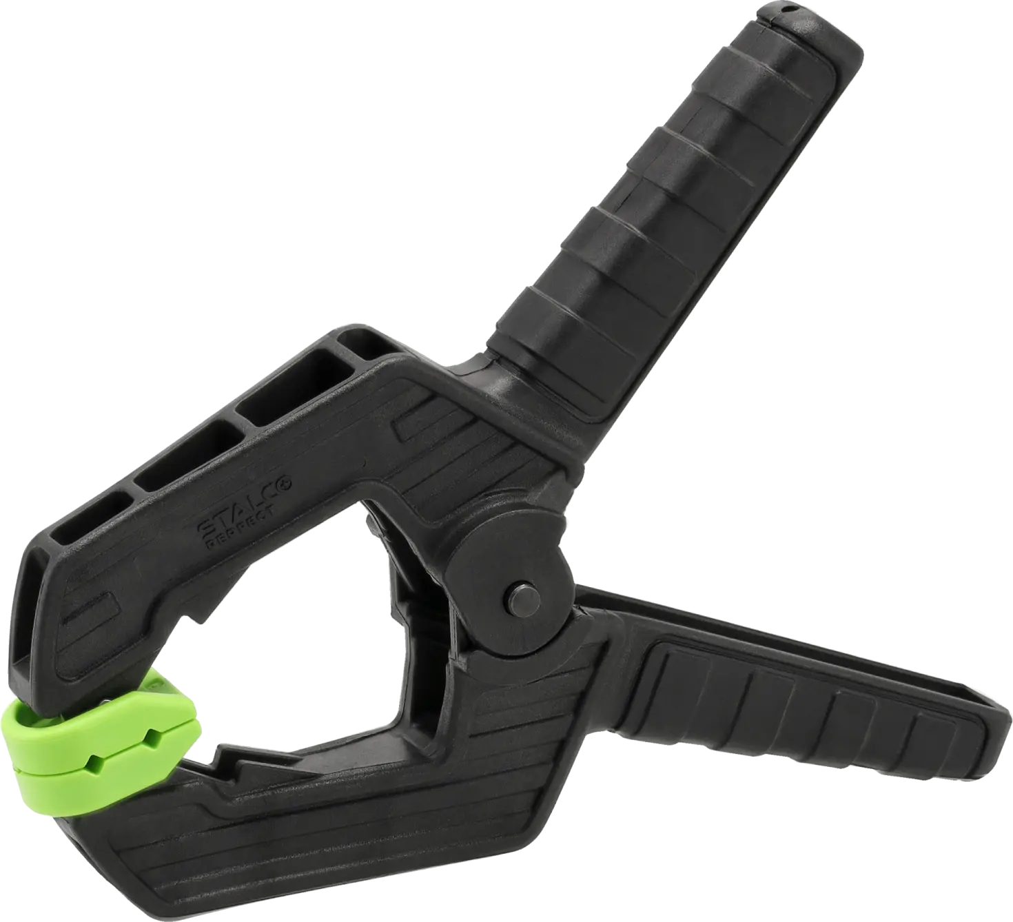 A hand-held spring clamp with a reinforced design, designed for professionals. Designed primarily for carpentry work, but also for general use, including clamping glued components. This clamp has a high clamping force of 12kg.
