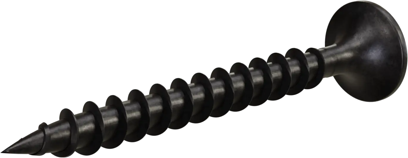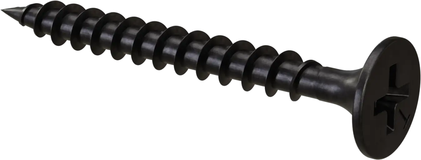 A phosphated screw for attaching plasterboard to steel substrates. Made of steel and coated with a phosphate coating, the screw has a sharp tip, a fully threaded shank, and a countersunk head with a PH2 socket.