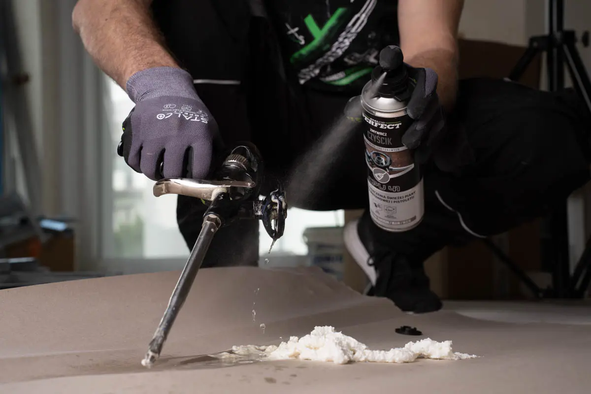 Cleaning valves, nozzles, and foam guns used for assembly and sealing