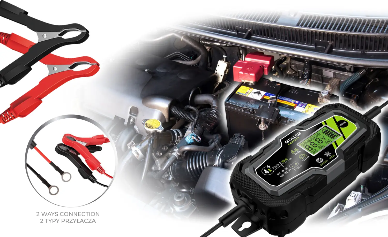 The STALCO PERFECT PowerPulse 4A Car Charger is an advanced microprocessor-controlled device for charging and maintaining a wide range of batteries, including WET, MF, GEL, AGM, EFB, and LFP types. With an automatic 10-stage charging process and 7 operating modes, PowerPulse adjusts charging to the specific needs of each battery, ensuring long lifespan and optimal performance.