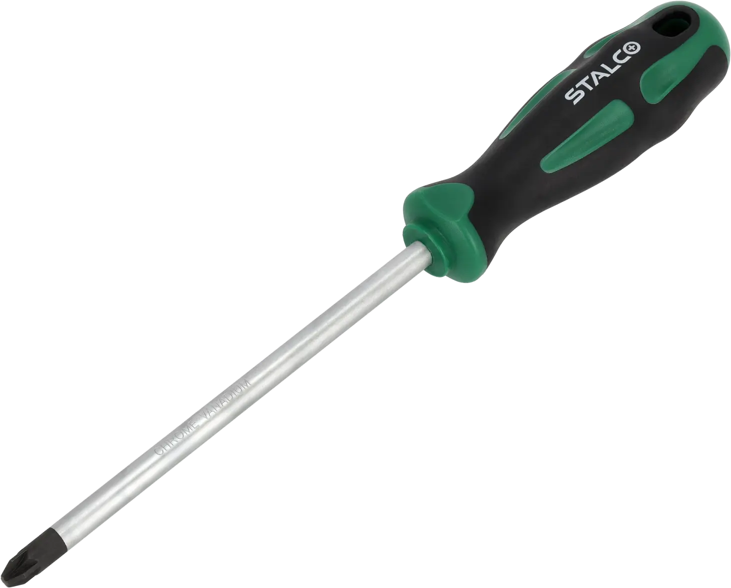 When looking for hand tools for your workshop, consider a Pozidriv screwdriver. This handheld tool features a Phillips tip with four additional protrusions. These tips are used in carpentry screws, which require greater pressure during installation. Therefore, the tool is primarily useful for construction and design work, as well as minor repairs. The Pozidriv screwdriver from STALCO is made of high-quality chrome-vanadium tool steel. This grade provides resistance to abrasion and breakage, and protects the tool from corrosion. The screwdriver is equipped with an ergonomic plastic handle that allows for a secure grip. Pozidriv screwdrivers come in sizes from PZ0 to PZ3, with shank lengths ranging from 75 to 150 mm.