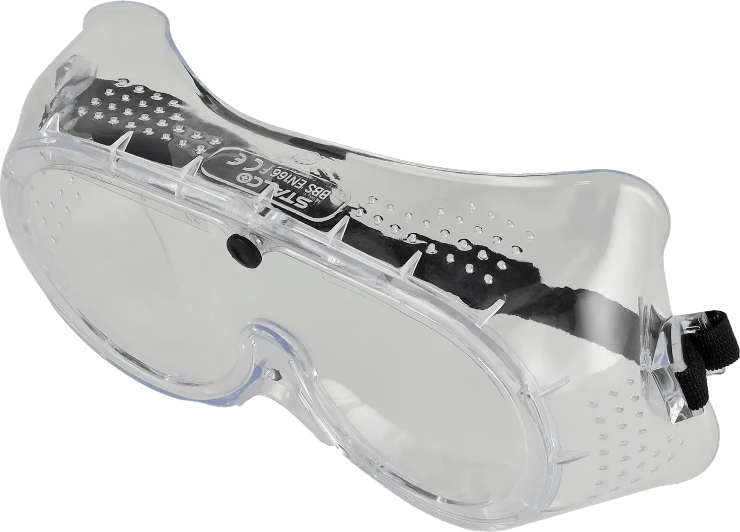 Comor anti-splinter goggles provide excellent comfort even during long hours of work. Ventilation holes are located on the sides, allowing moisture to escape and preventing fogging. They are equipped with an elastic, adjustable strap that holds them in place. This is especially useful for work requiring intense mobility. The lenses are made of transparent plastic, ensuring good visibility and contributing to the protectors' low weight.