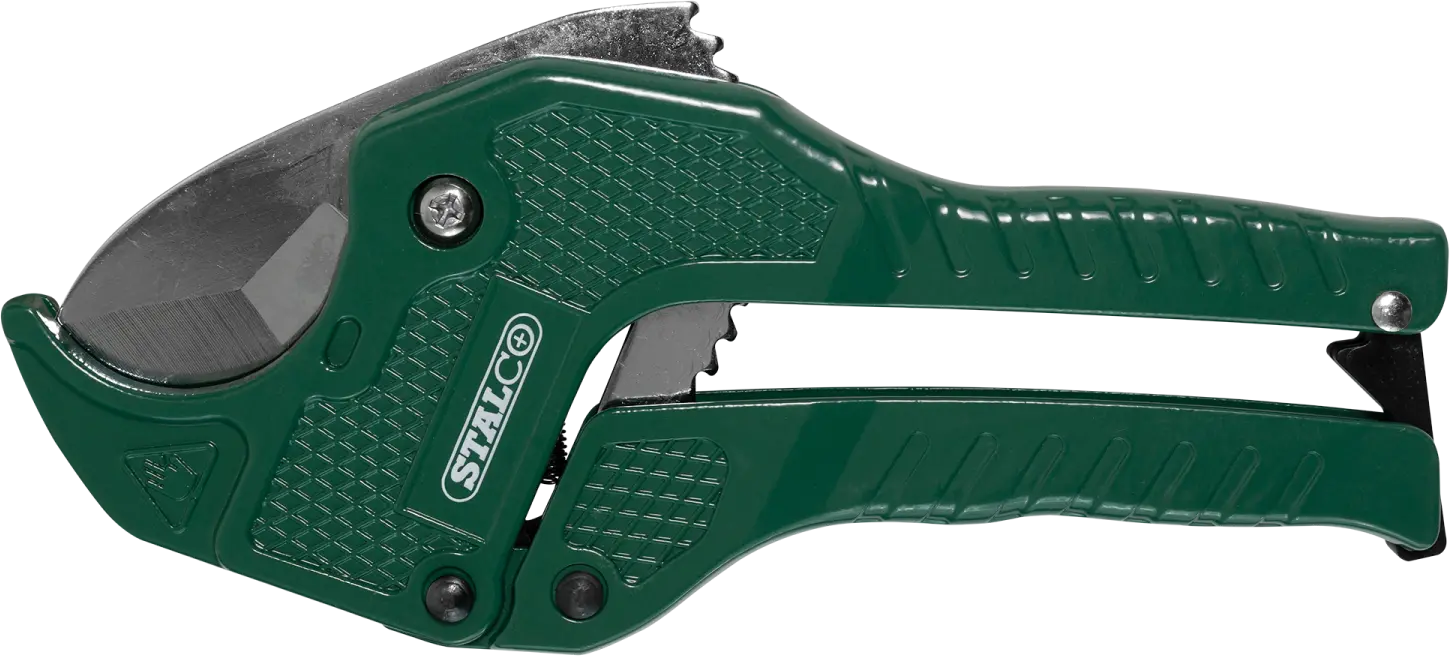 A PVC pipe cutter is indispensable for plumbing work. The tool resembles a pair of pruners, and its design allows for a firm grip on the pipe and precise cuts. It's useful for cold water installations or installing plastic conduit. The PVC pipe cutter features an automatic blade adjustment and pressure system, making work easier. Cutting comfort is also enhanced by the lightweight aluminum housing and hand-shaped handles. The PVC pipe cutter can cut pipes made of any plastic. You can use it to work on components up to 42 millimeters in diameter.