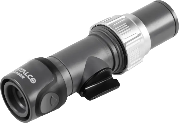 Garden fittings element designed for connecting hoses to a water source or sprinkler device