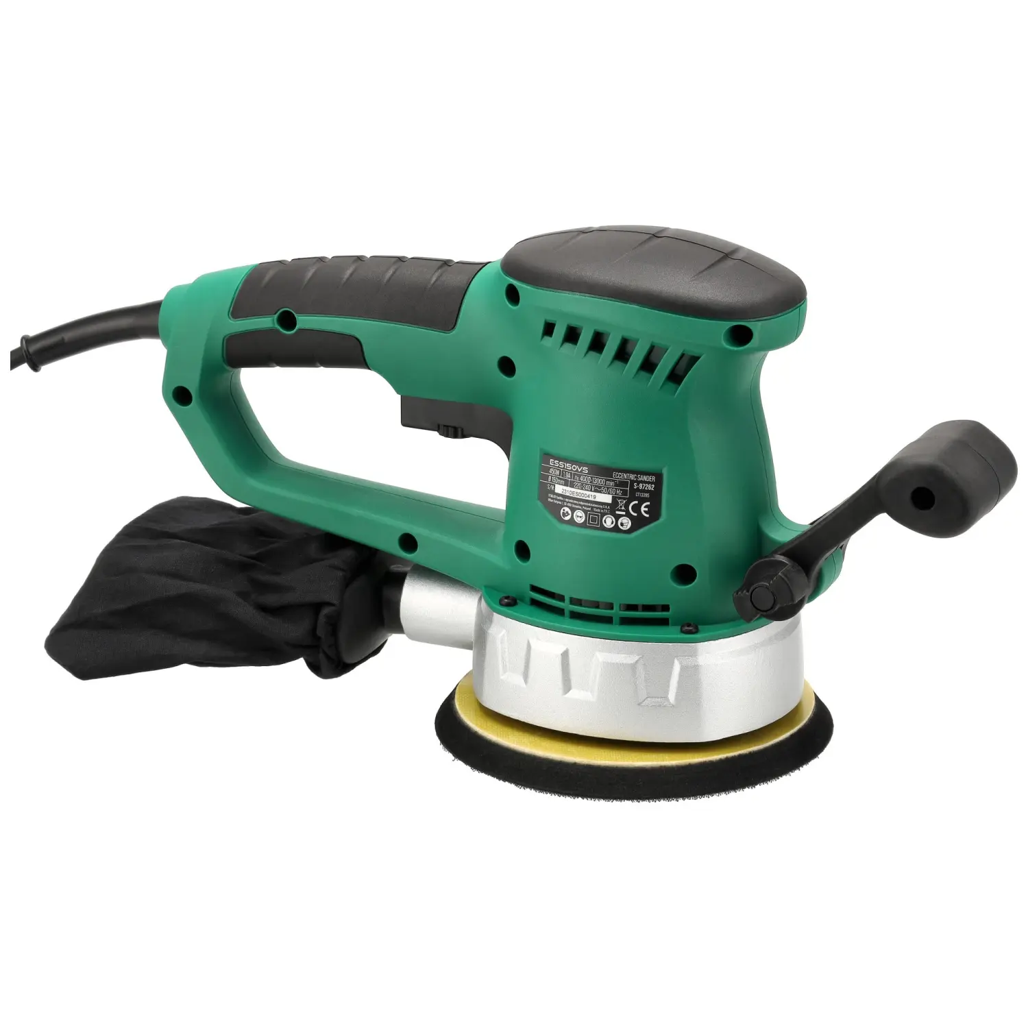 The ESS150VS random orbital sander is supplied with a dust bag and two sanding discs.