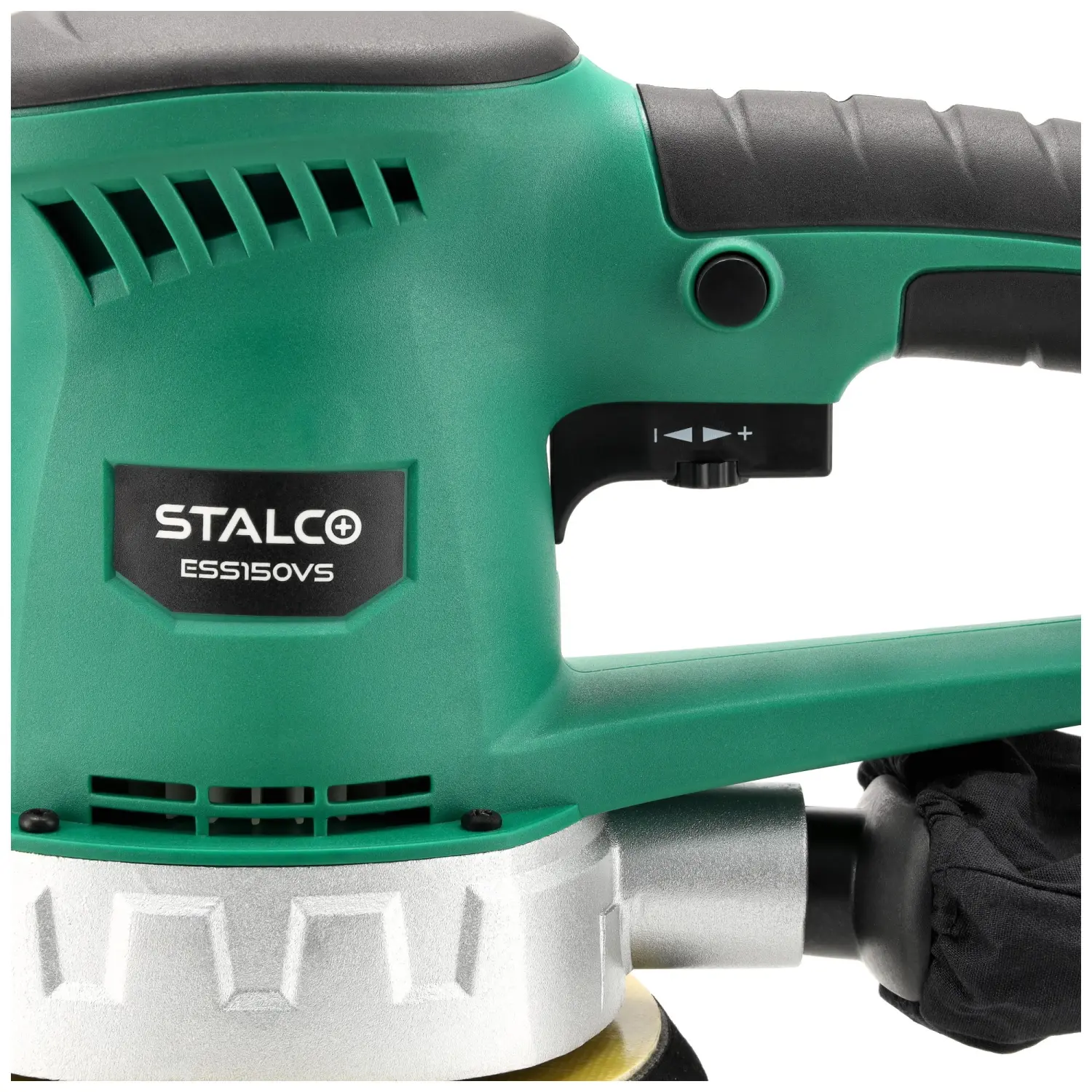 The 450 W mains-powered motor ensures efficient operation even on demanding materials. The ESS150VS features a speed control dial allowing adjustment between 6,000 and 13,000 revolutions per minute. Additionally, the switch lock function enables continuous operation at selected settings, allowing the operator to focus fully on the task.