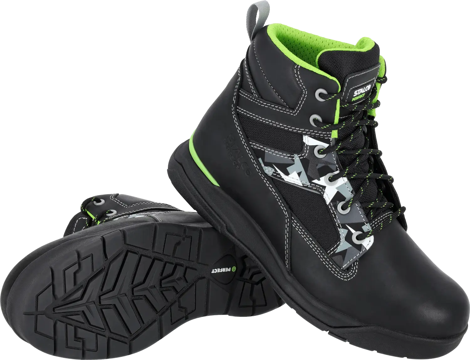 The ROOFER O3S leather ankle boot is a reliable footwear designed for roofers who work in demanding conditions at height. Made of durable, natural crazy horse leather, it guarantees durability and resistance to damage, while maintaining flexibility and comfort for all-day wear. The sole of the shoe is made using cemented technology, ensuring a durable and solid connection of the elements. The middle layer made of black EPR and green TPU guarantees lightness, flexibility and resistance to high temperatures, while the outer layer made of black rubber (RB) provides excellent grip and abrasion protection.