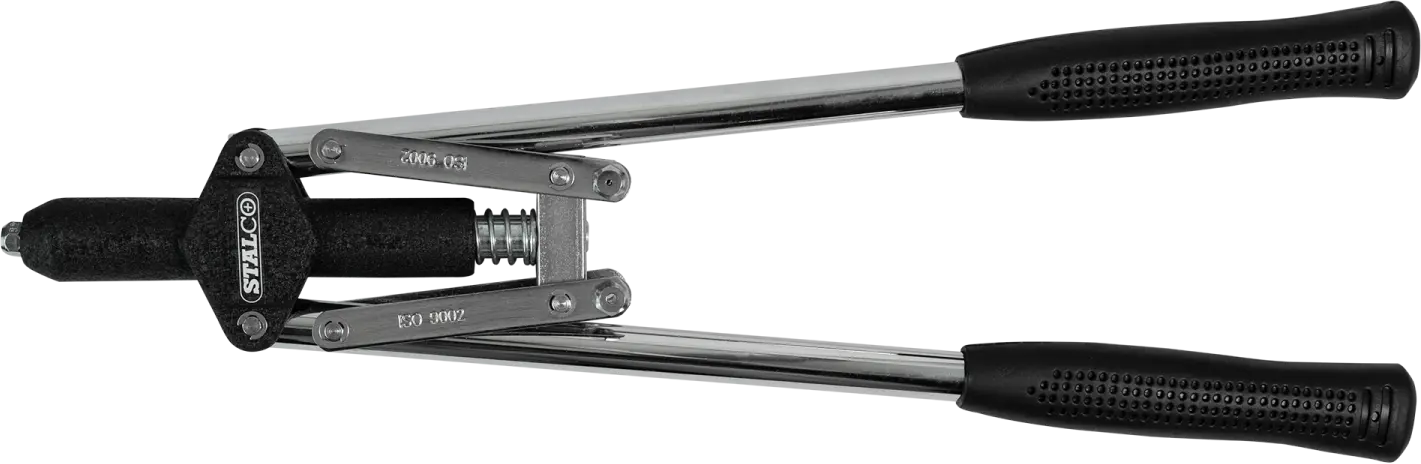 The scissor riveter is a functional hand tool with a distinctive design. It is used for removing steel-aluminum rivets during assembly work. It is suitable for joining metal elements, leather, fabrics, and many plastics. The riveter's scissor design allows for very high-force work. It also facilitates removing rivets located in tight and difficult-to-reach spaces. The Japanese-style STALCO scissor riveter is used for setting and removing steel-aluminum rivets. It has a steel body resistant to scratches, cracks, and other mechanical damage. Ergonomic plastic handles are located at the ends of the 460 mm long arms. The riveter is equipped with several tips suitable for rivets with diameters ranging from 2.4 to 5 mm. This increases the tool's application possibilities and makes it even more versatile.
