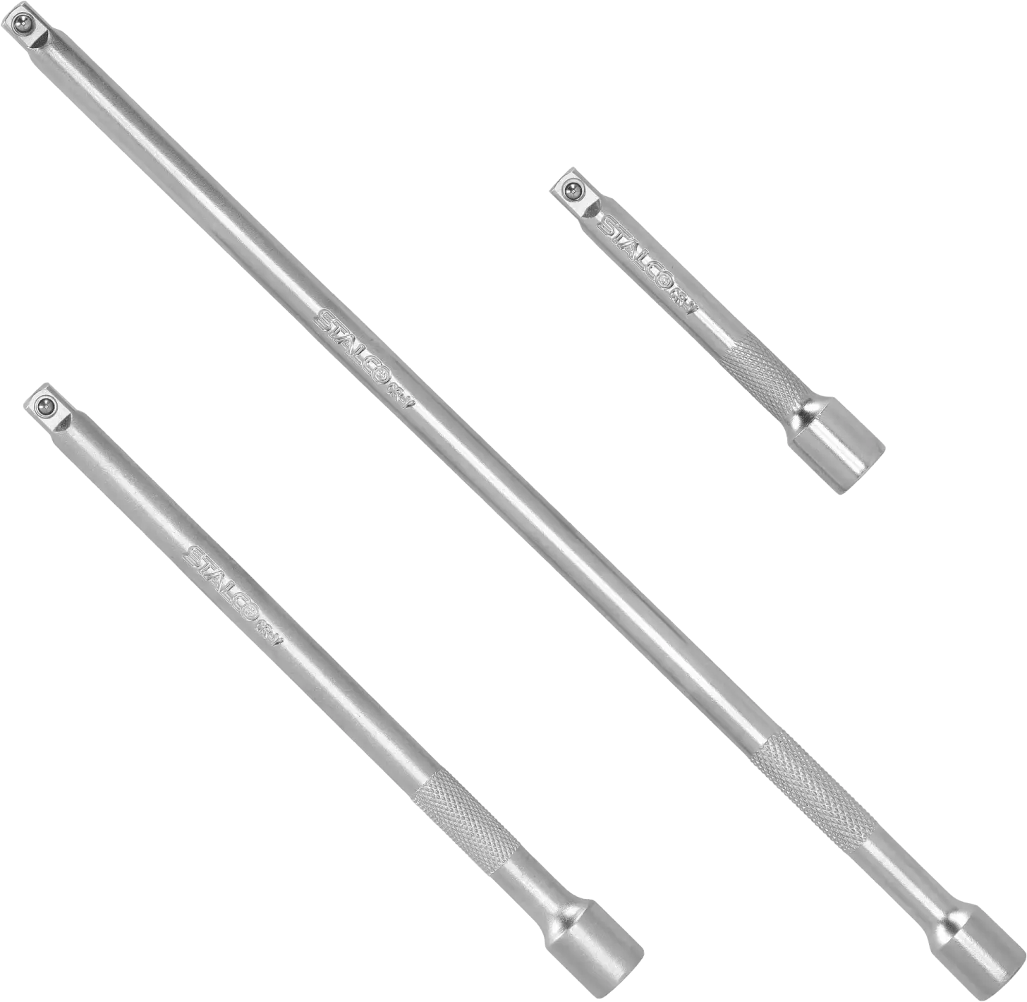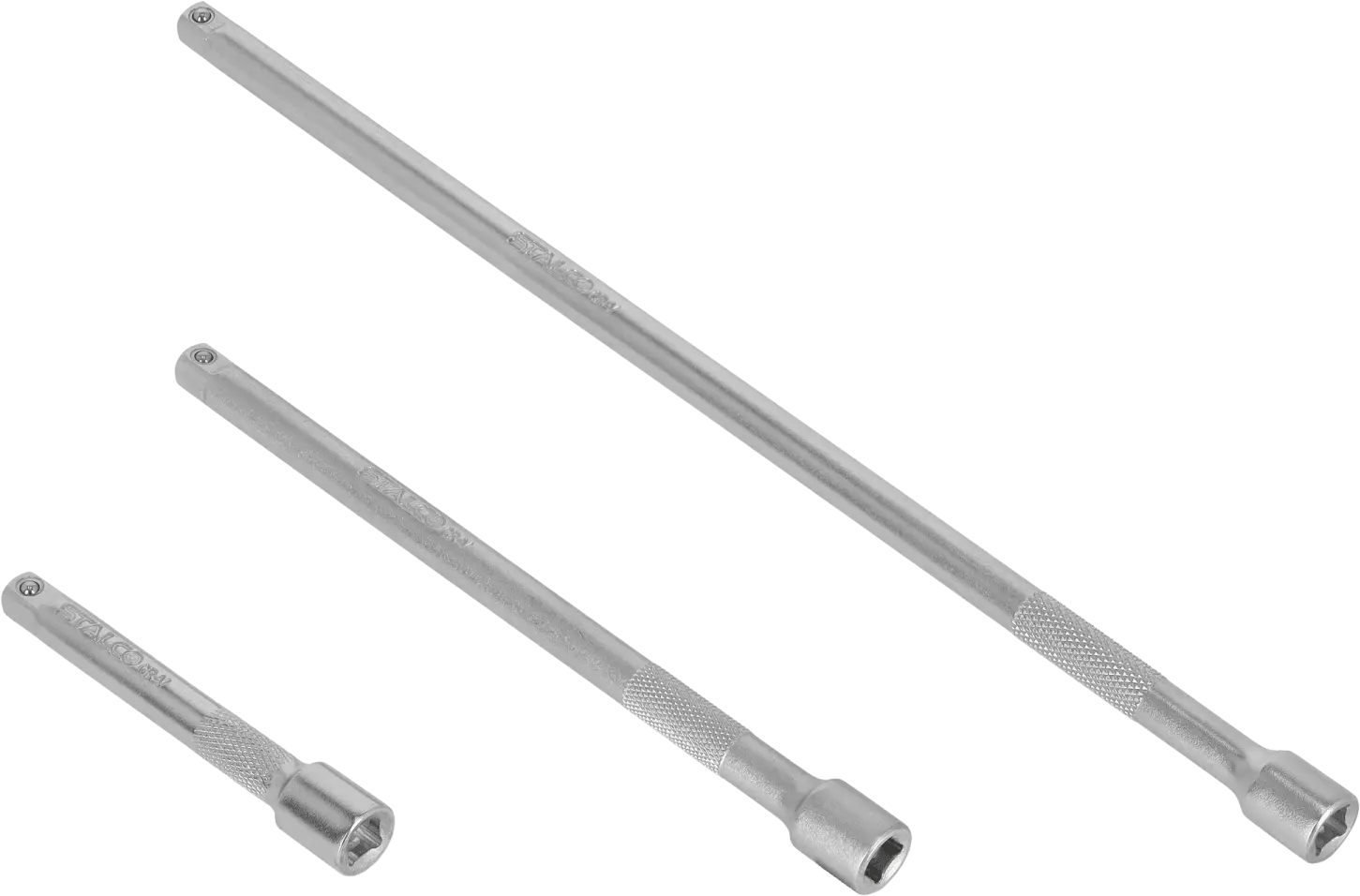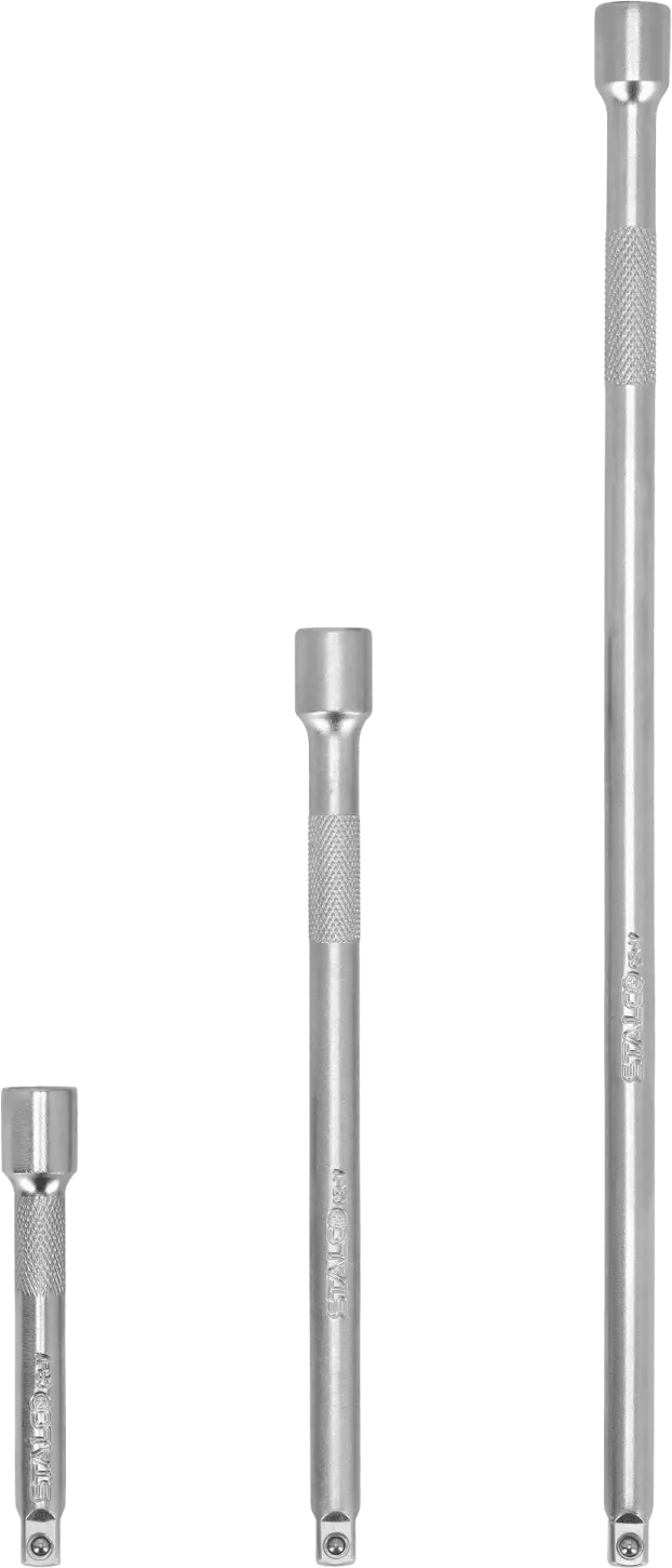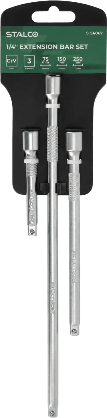 The 1/4" extension bar set consists of three pieces made of chrome-vanadium steel. This material ensures high durability, making them suitable even for industrial applications. The extensions have different lengths, providing highly versatile usability. All ends feature 1/4" connections, making them ideal for very precise work.