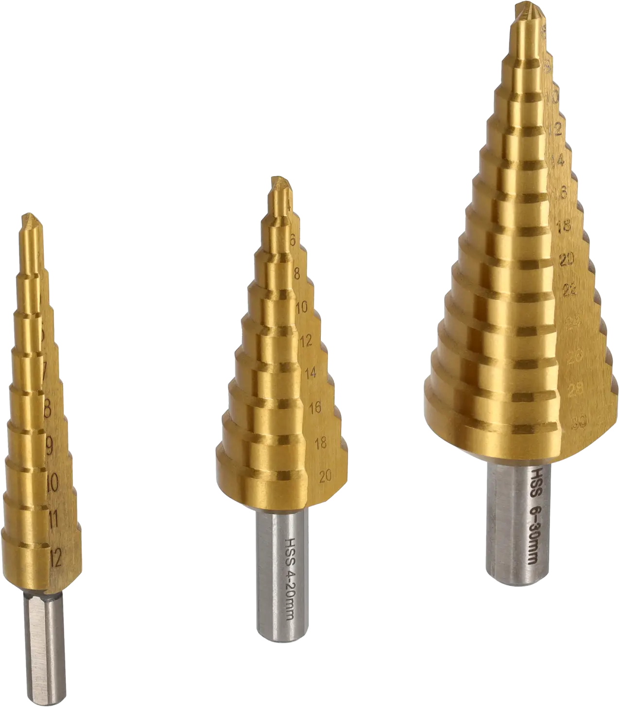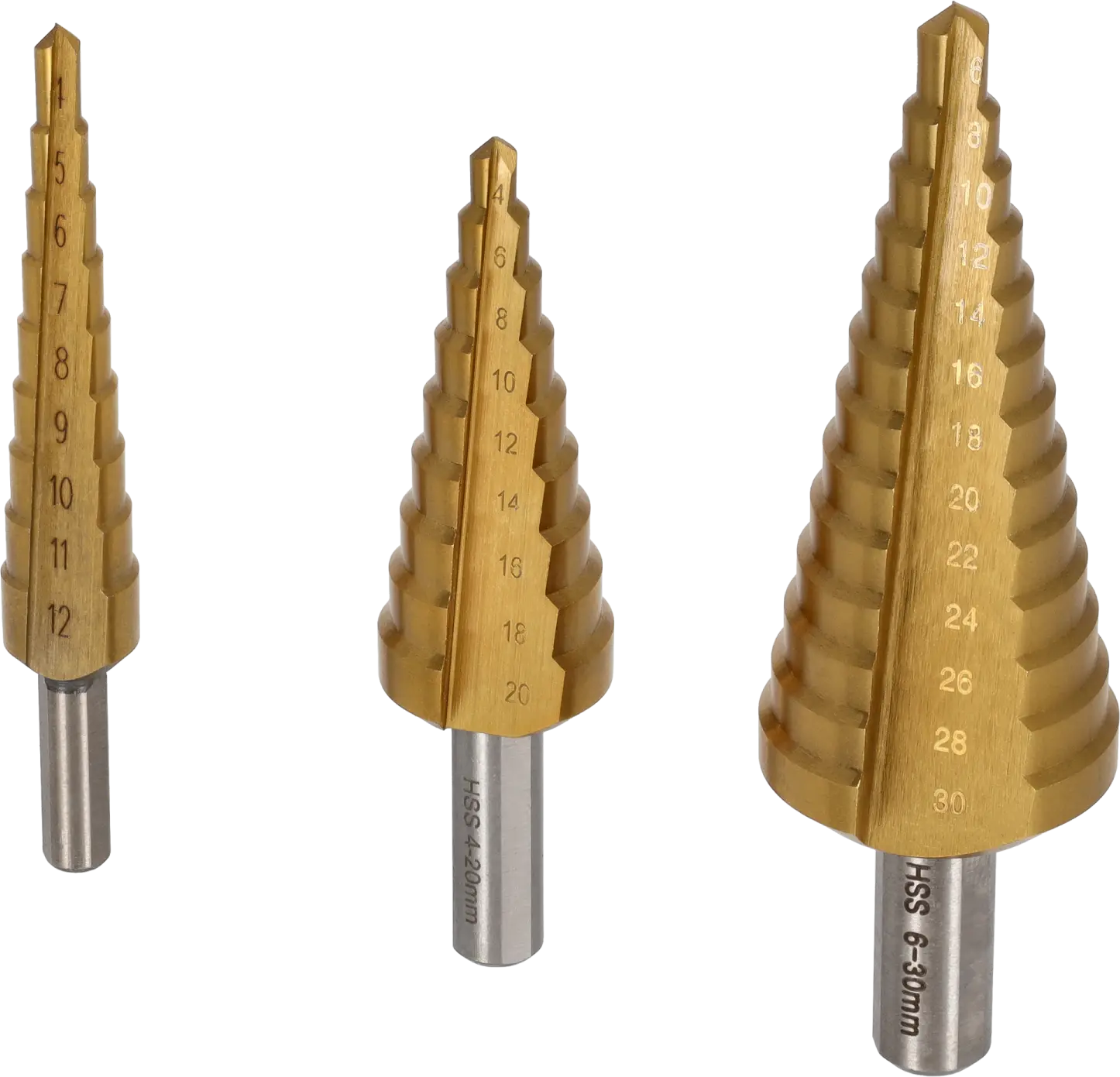 - Set of three step drills ranging from 4 to 30 mm Structural coating: TiN titanium nitride coating. ADVANTAGES OF STRUCTURAL COATINGS: