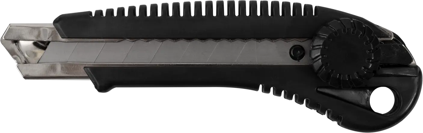 This compact snap-off blade knife is a versatile tool. The retractable modular blade is housed within an ergonomic plastic housing. You can extend the blade to your desired length and then secure it against retraction during use. The snap-off blade knife is equipped with a steel guide. This adds durability and makes it safer for the user. You can store it in a toolbox without worrying about cutting yourself while rummaging through it. The snap-off blade knife is ideal for construction and workshop work. It will prove to be a first-aid tool in the event of a home emergency.