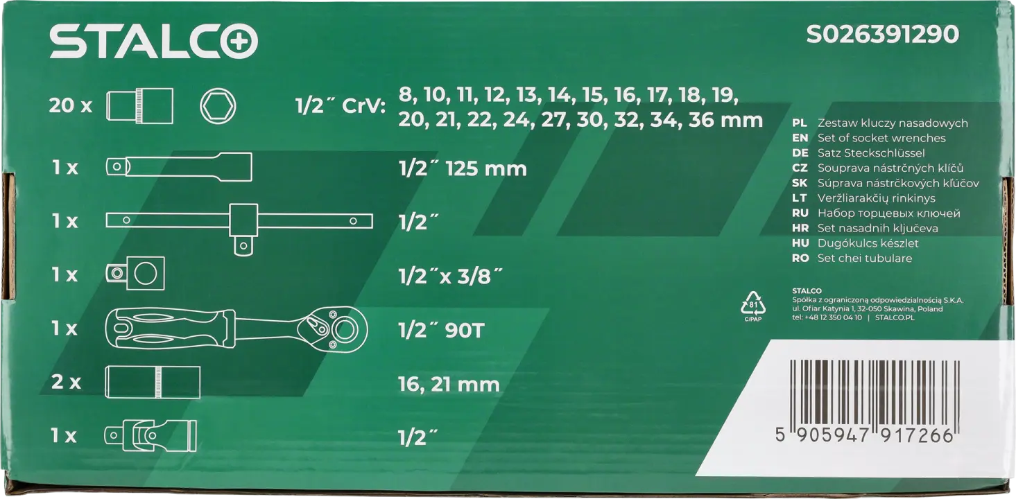 EVA foam insert: 1/2" socket wrenches, designed for all STALCO tool cabinets. 1/3 drawer size.