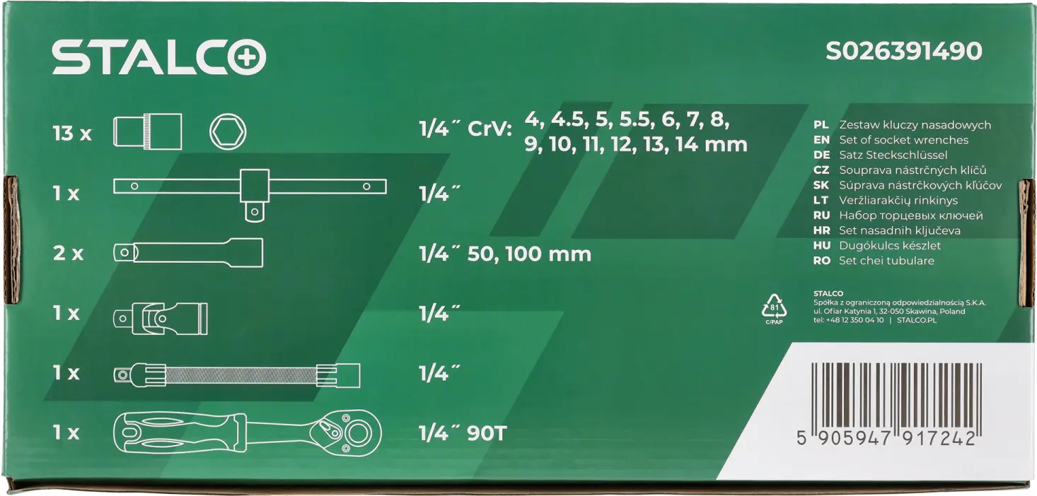 EVA foam insert: 1/4" socket wrenches, designed for all STALCO tool cabinets. 1/3 drawer size.