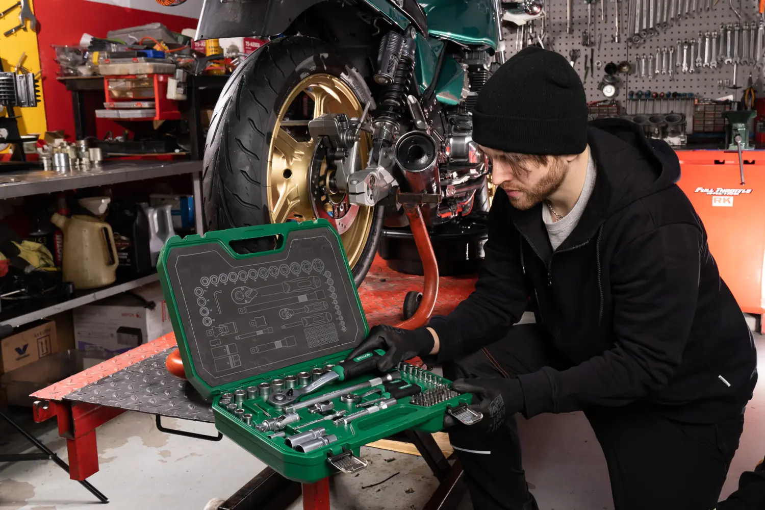 CrV steel, 90-tooth ratchet, 84 pieces, plastic packaging.