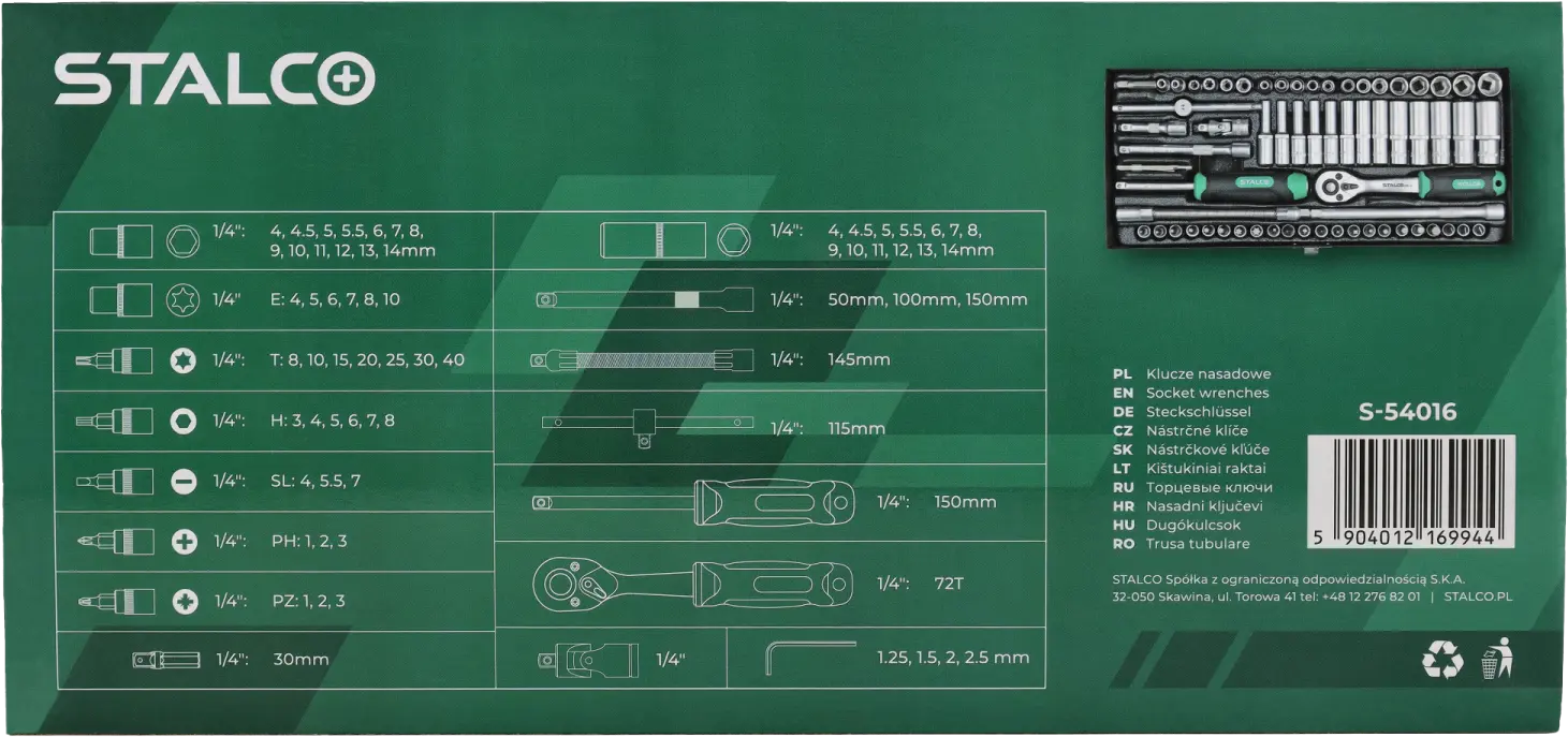 - 1 x Ratchet: 1/4â€: 72 T