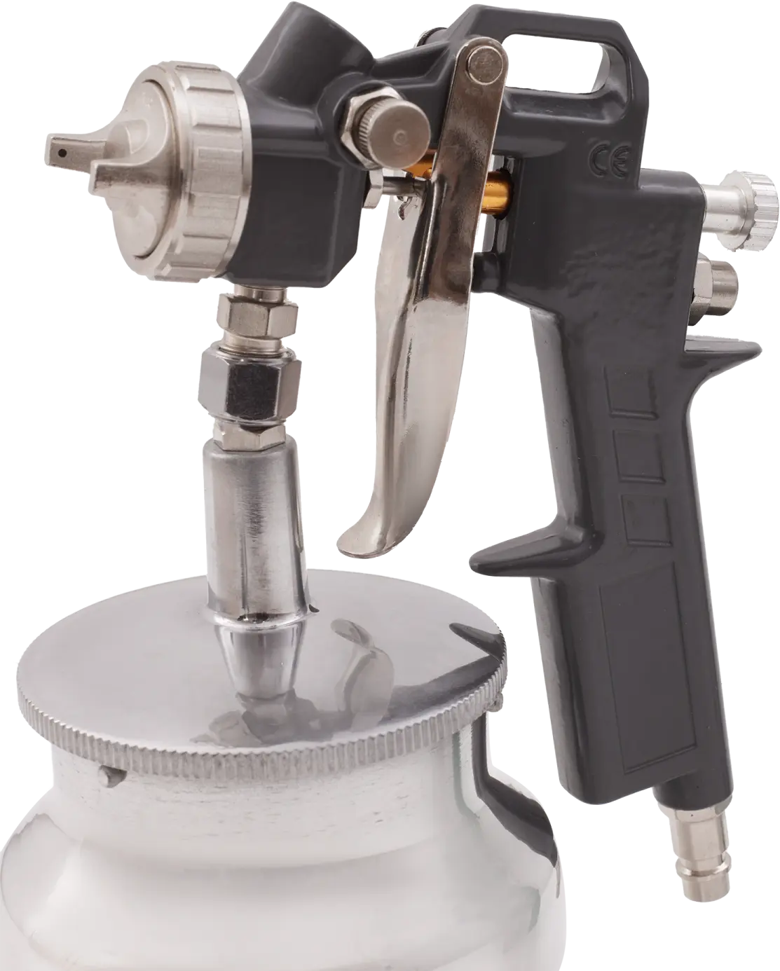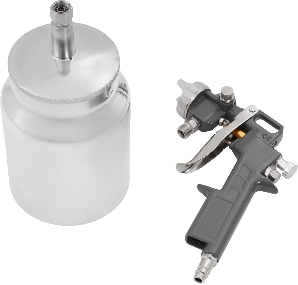 A spray gun can be useful for painting and varnishing work. This device is a working attachment on painting units. It is used for applying paints and varnishes. Its design and material selection make it suitable for professional use. The STALCO spray gun has a 1.5-millimeter nozzle that allows for an airflow of up to 200 liters per minute. It can be connected to a compressor using a quarter-inch quick-connect coupling. A 1-liter paint tank is located at the bottom, allowing for long-term operation without maintenance interruptions. The tank is designed for easy cleaning, ensuring the device remains operational for a long time.