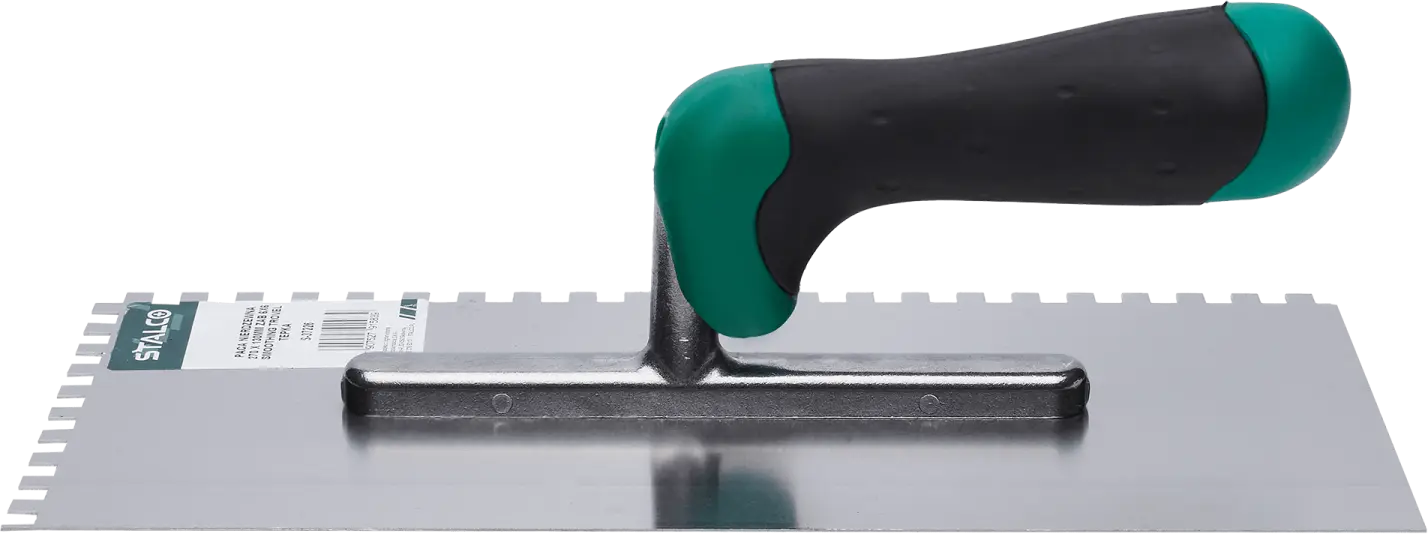 The 280 x 130 mm stainless steel trowel is a highly versatile tool. It is useful for many construction tasks. It is used for applying plaster, masonry, and finishing coats. It can be used for troweling, smoothing, and shaping surfaces. The thin edges can also be used to remove excess plaster. The STALCO stainless steel trowel is a tool with a very long service life. Stainless steel is resistant to the aggressive chemicals contained in the plaster. The ergonomic handle is made of a durable two-component material. The trowel is easy to clean, so it can be used repeatedly. STALCO offers trowels with notched edges in various widths.