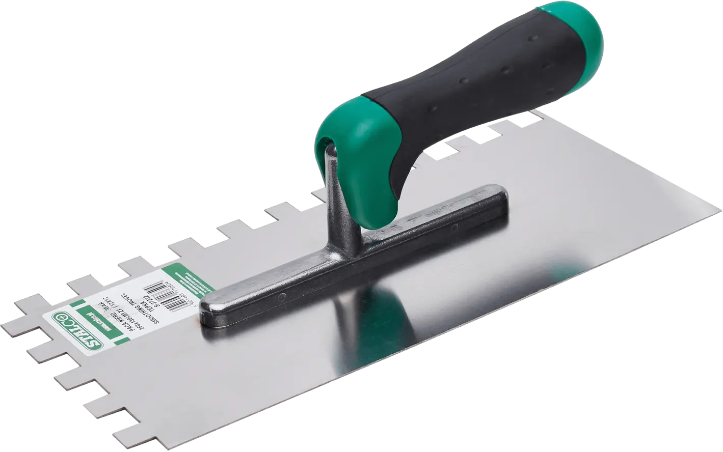 The trowel is designed for spreading adhesive mortars on tiles during tiling work and for making grooves on them, which guarantee better adhesion of the tile to the substrate.