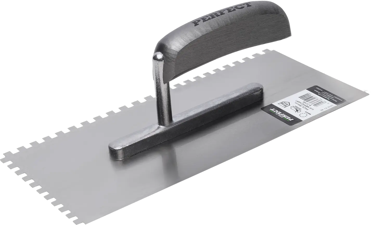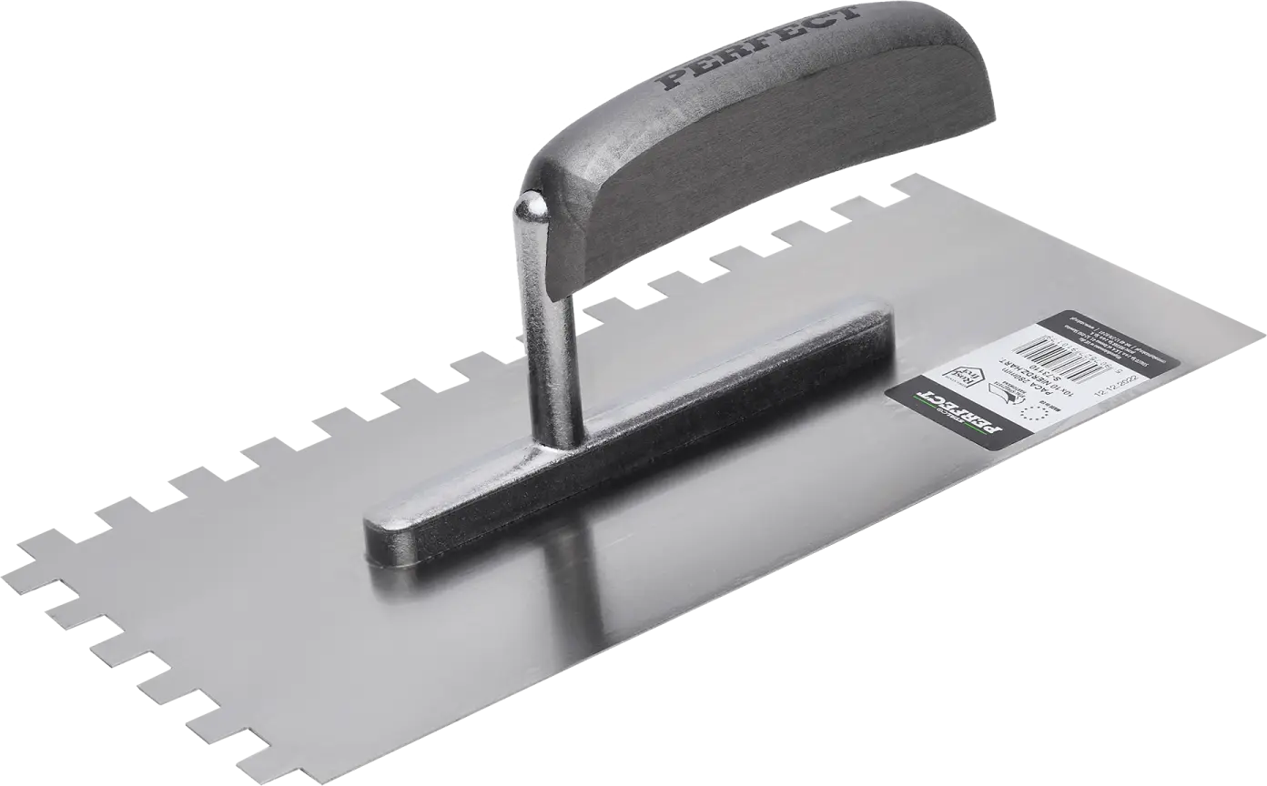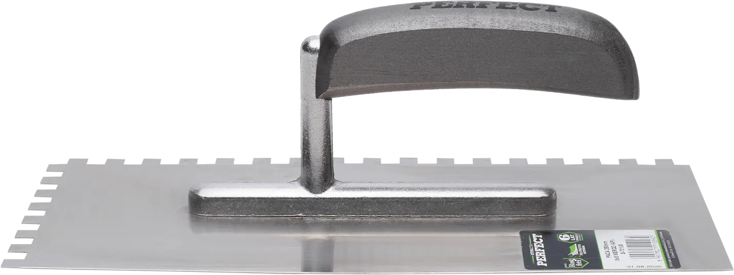 A stainless steel trowel is a useful tool for many construction projects. It is designed for spreading building materials. It can be used for applying mortar, plastering, and leveling adhesives. Its design allows for an even layer across the entire surface of a masonry element. This STALCO Perfect stainless steel trowel is made of very hard stainless steel. The selected material is resistant to abrasion, cracking, and other mechanical damage. It also does not react with building materials and does not change their properties. The 280 x 130 mm trowel has a comfortable handle made of varnished beechwood. Depending on the scope of work, you can choose a trowel with smooth or notched edges. The trowels can have 6, 8, or 10 teeth on the surface.