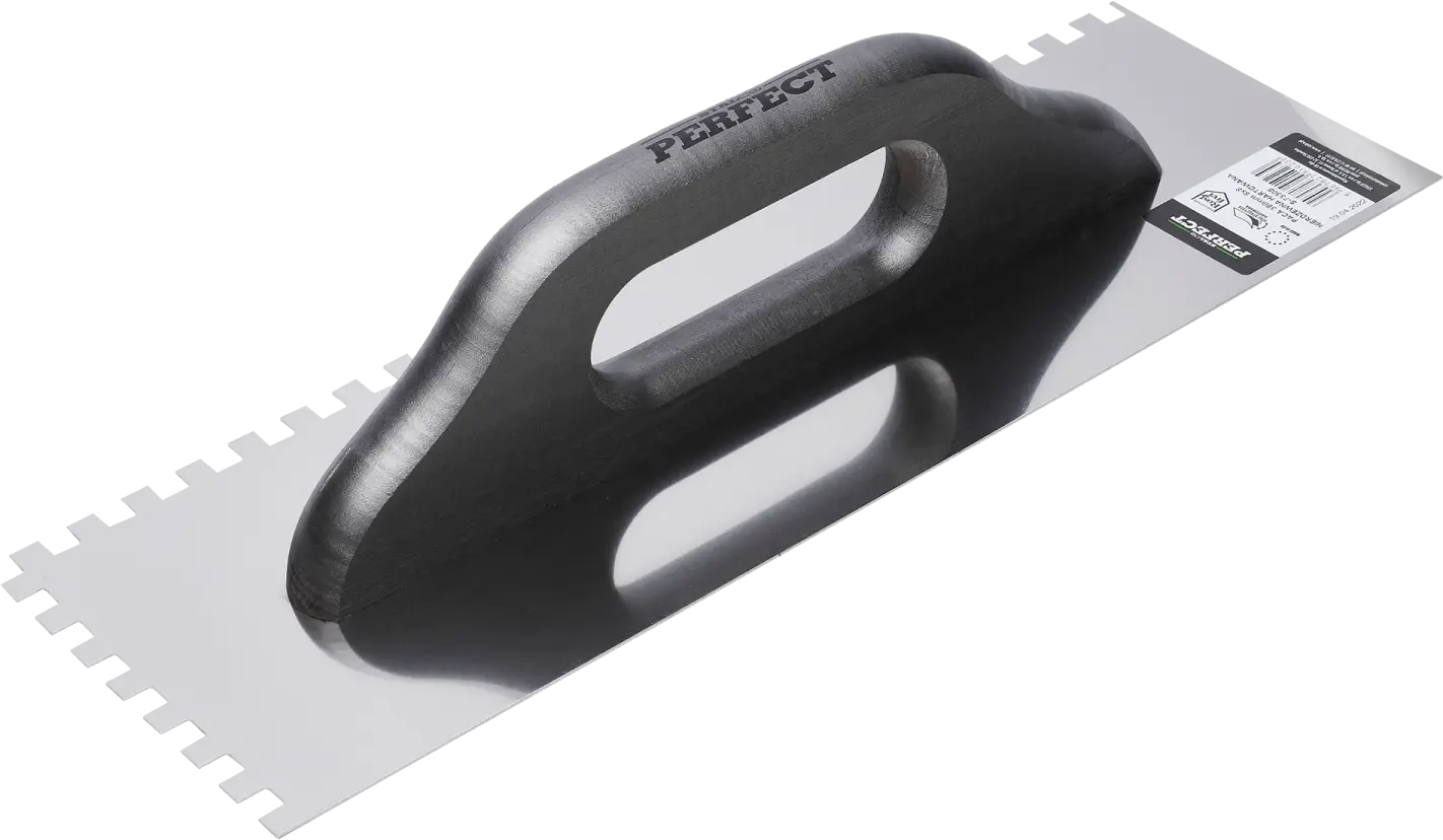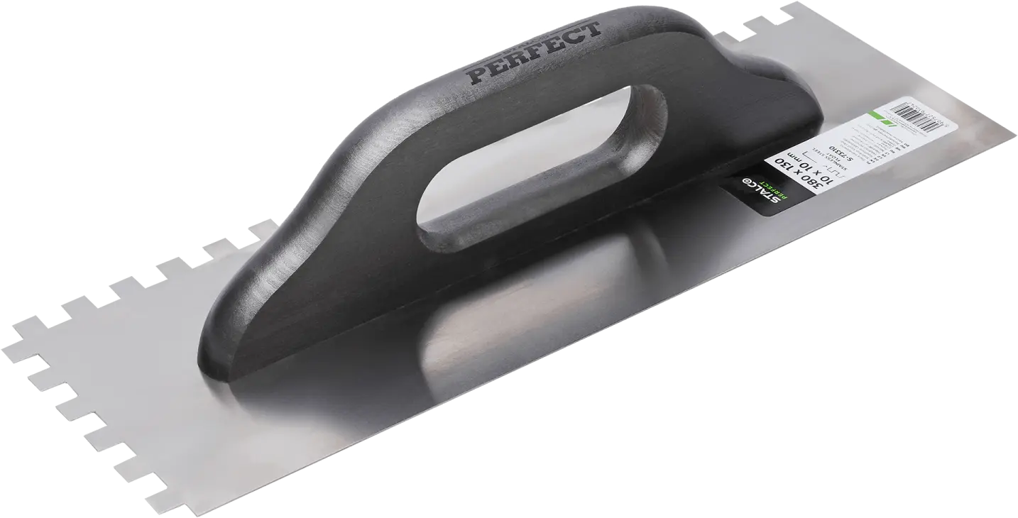 When carrying out masonry and plastering work, you'll need a stainless steel trowel. This tool is useful for spreading plaster, gypsum, and adhesive construction compounds. It's available in four variants with smooth edges and notches of varying widths. You can choose the right tool and adjust it to the mass density and layer thickness. The STALCO Perfect stainless steel trowel is made of stainless steel. The material is hard, resistant to cracking and deformation, and does not corrode under the influence of chemicals found in construction materials. After the work is completed, it can be easily cleaned and restored to its original appearance. The trowel has a handle made of beechwood and coated with varnish. Its comfortable and stable construction allows for efficient application of the compound.