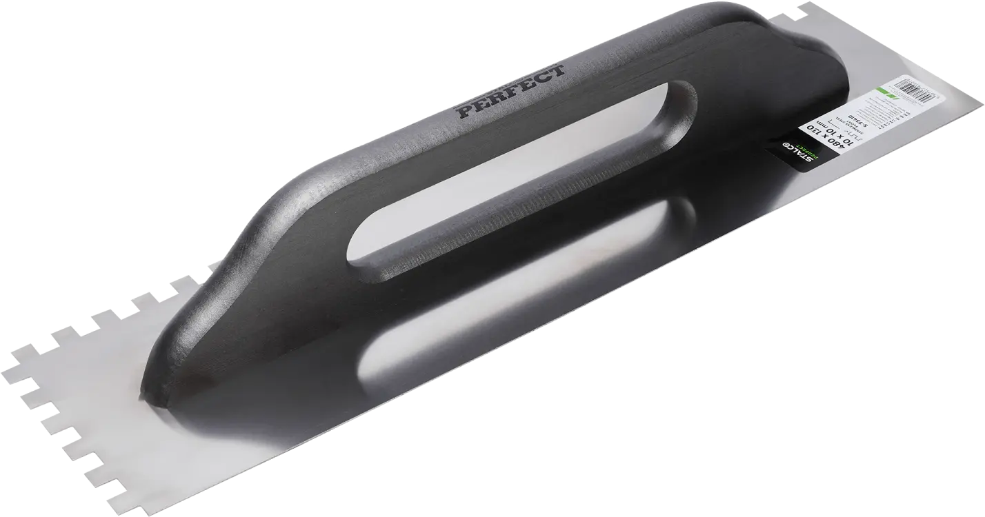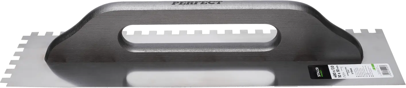 One of the most basic construction tools is the stainless steel trowel. Its flat shape is useful for applying and spreading building materials. It can be used for applying masonry mortar and plaster. It is also suitable for gluing ceramic tiles. Its dimensions of 480 x 130 mm make it very versatile for both large and small jobs. The STALCO Perfect stainless steel trowel is a very durable product. The working surface is made of high-hardness stainless steel, which prevents the tool from deforming or damaging when spreading the mixture. The comfortable beechwood handle improves comfort even during long hours of work. The trowels are available in four versions, each with different edge finishes. In addition to flat edges, you can also choose a serrated edge. This allows the trowel to be used for various thicknesses of mortar.