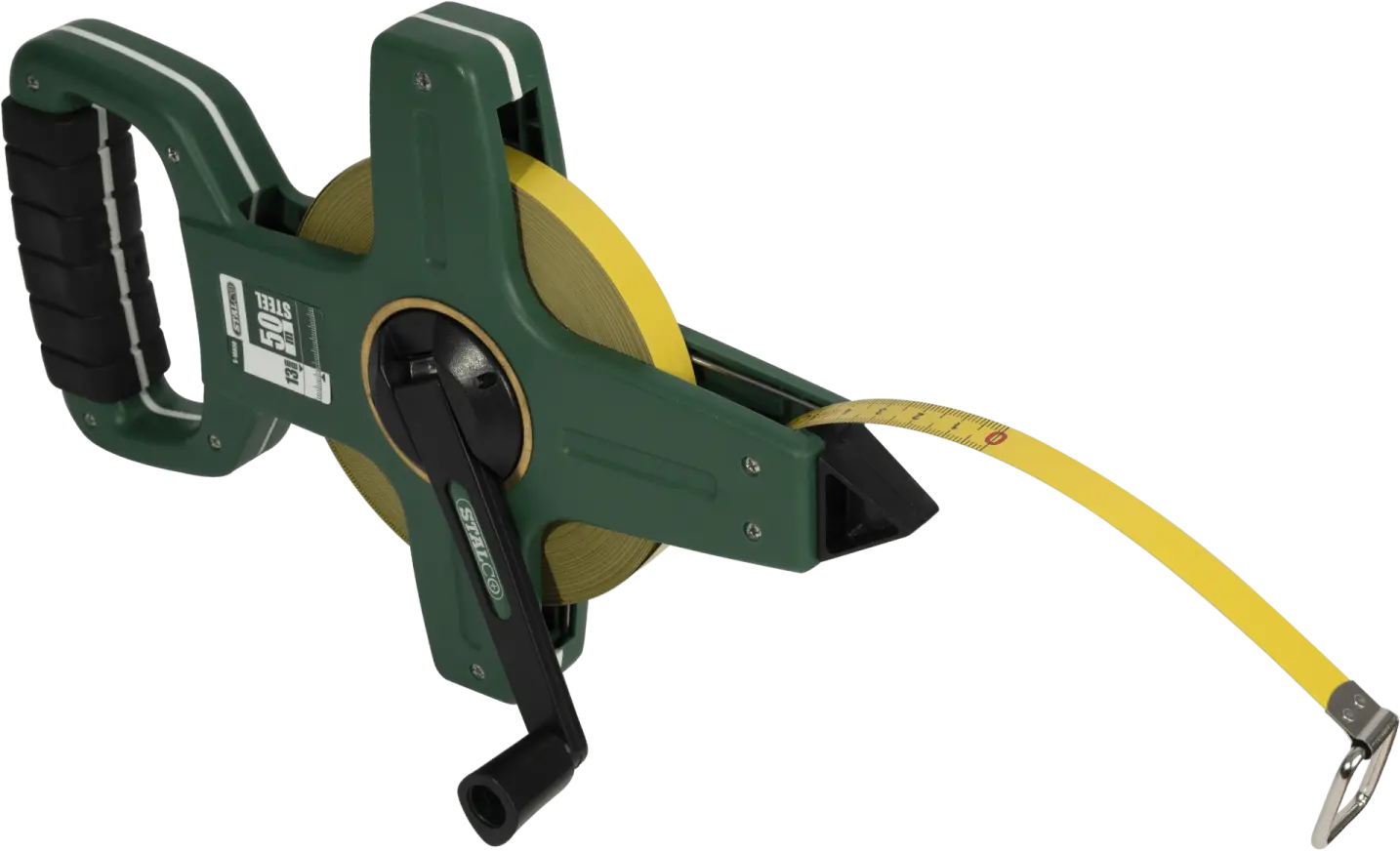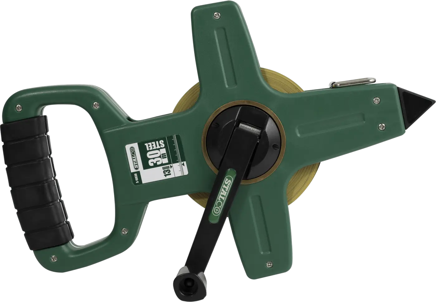 When estimating the area of ​​a plot, you may need a steel surveying tape. This tool will be useful for taking measurements at distances of up to 50 meters. It is especially useful for conducting surveying takeoffs or planning gardening projects. The durable, graduated tape does not stretch, and the steel hook and crank for winding make measuring easier. The steel surveying tape has a plastic housing. It is impact-resistant, and the rubber grip makes it easy to stretch the tape.
