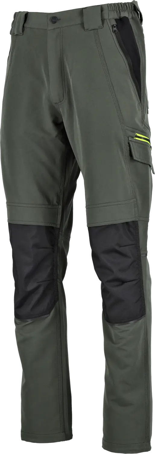 Functional pockets: While working, small items and tools can be placed in the functional pockets. There aren't many of them due to the trekking nature of the trousers, but they have everything you need for work. On the sides, there is a tool pocket, a large one with a flap and a second one with a zipper above it, for storing valuables. Around the waist, there are 2 patch pockets on the back and 2 very spacious pockets on the front, both with zippers. When working in forced positions, the knee pockets are irreplaceable. Foam inserts, made of tear-resistant Oxford.