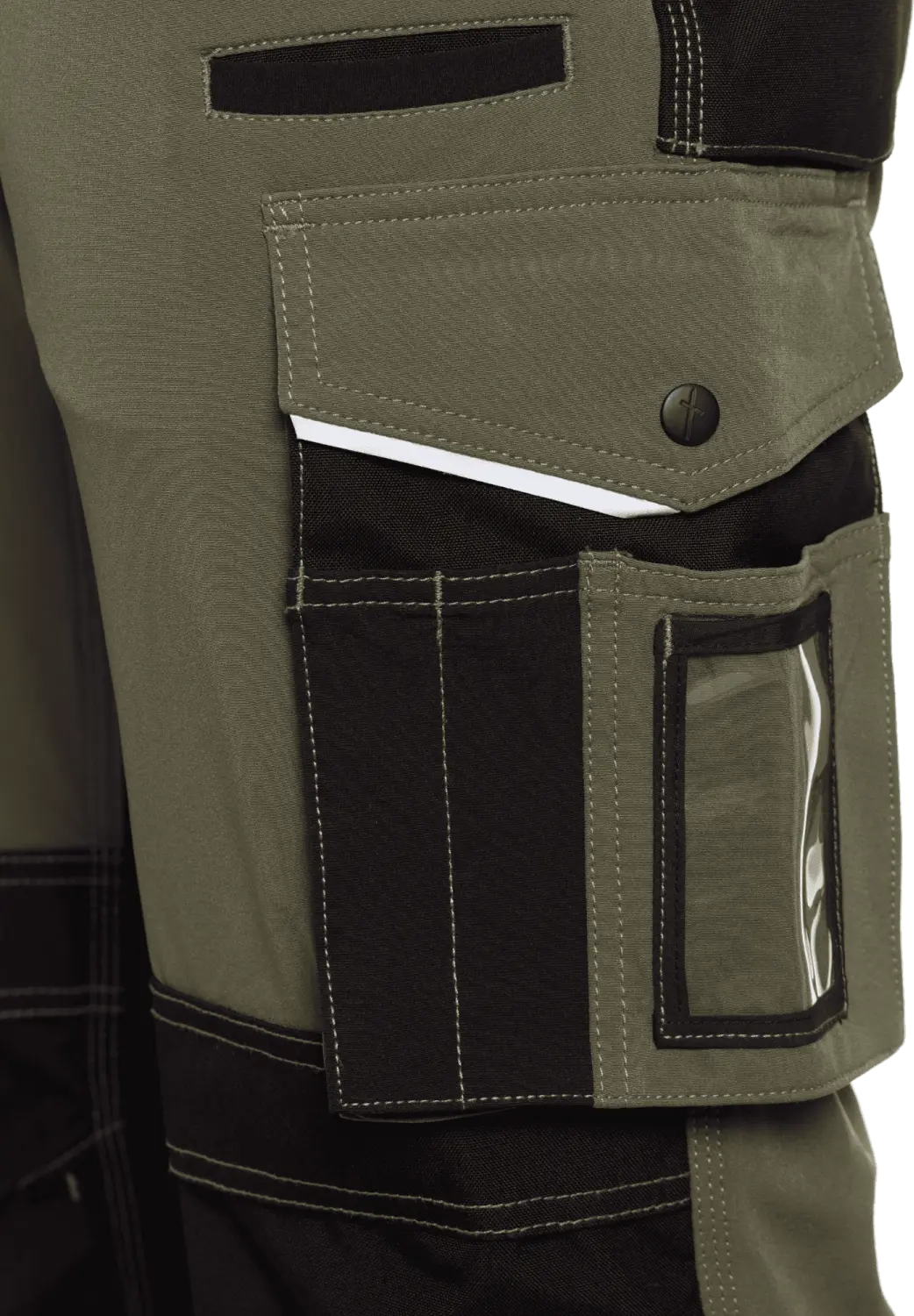 A significant advantage of the STRETCH LINE pants is their functionality, achieved, among other things, by numerous pockets reinforced with CORDURA, a highly damage-resistant material that significantly increases the pants' durability. Front and back pockets around the waist allow you to store documents and other small items. A side leg pocket holds handy tools, while pockets for a phone or ID card make it easy to keep necessary personal items close by. Knee pockets made of durable CORDURA, which can be inserted into foam inserts, will also be useful when working in awkward positions. The same CORDURA material is used to finish the bottom of the legs, so the trousers will not fray from the bottom, and the possibility of extending the legs by 4 cm is a nod to tall men.